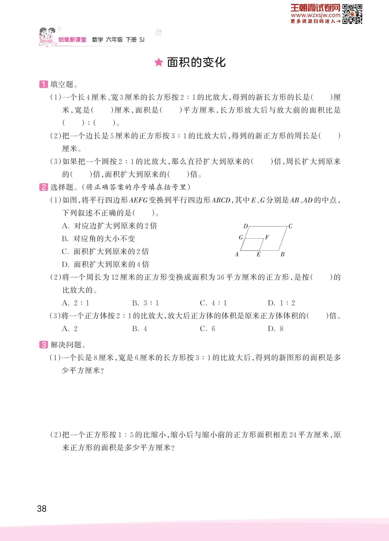 2023下册六年级数学苏教版 四 比例——面积的变化