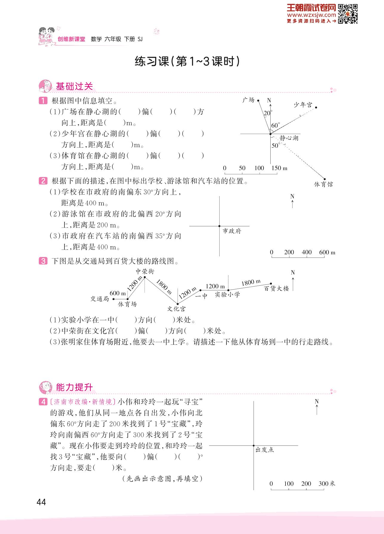 2023下册六年级数学苏教版 五 确定位置——练习课(第1~3课时)