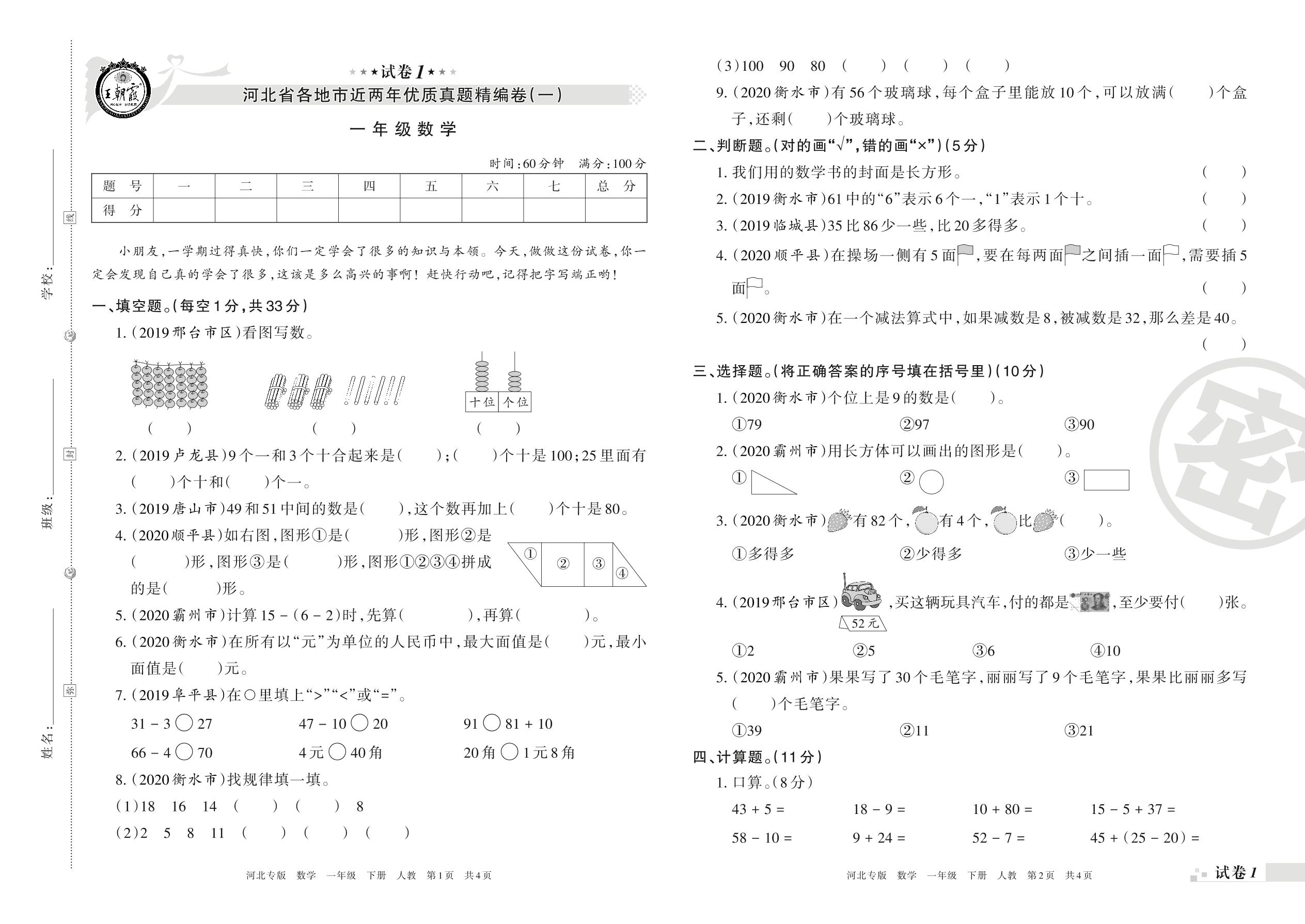 王朝霞海淘期末精编卷一年级下册数学(人教版)【1】