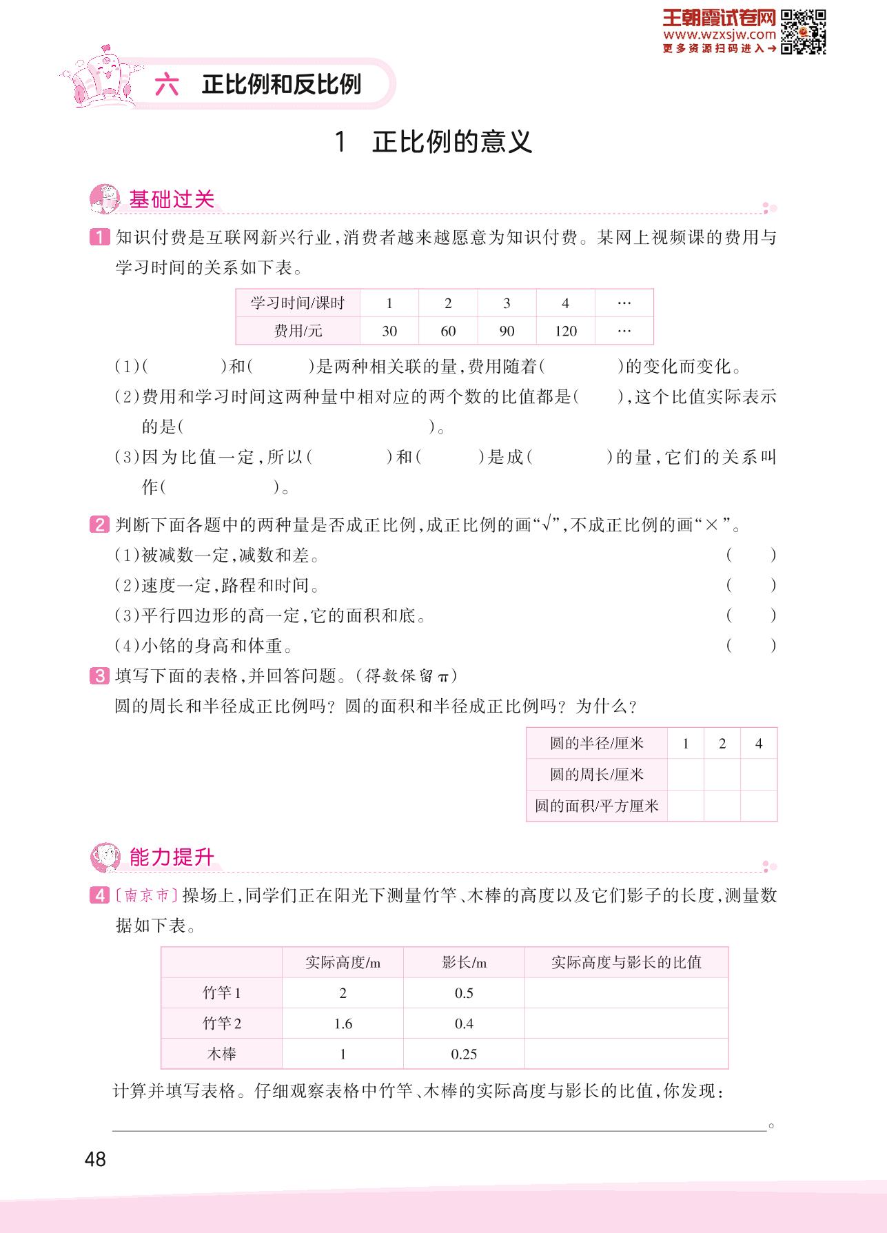 2023下册六年级数学苏教版 六 正比例和反比例——1 正比例的意义