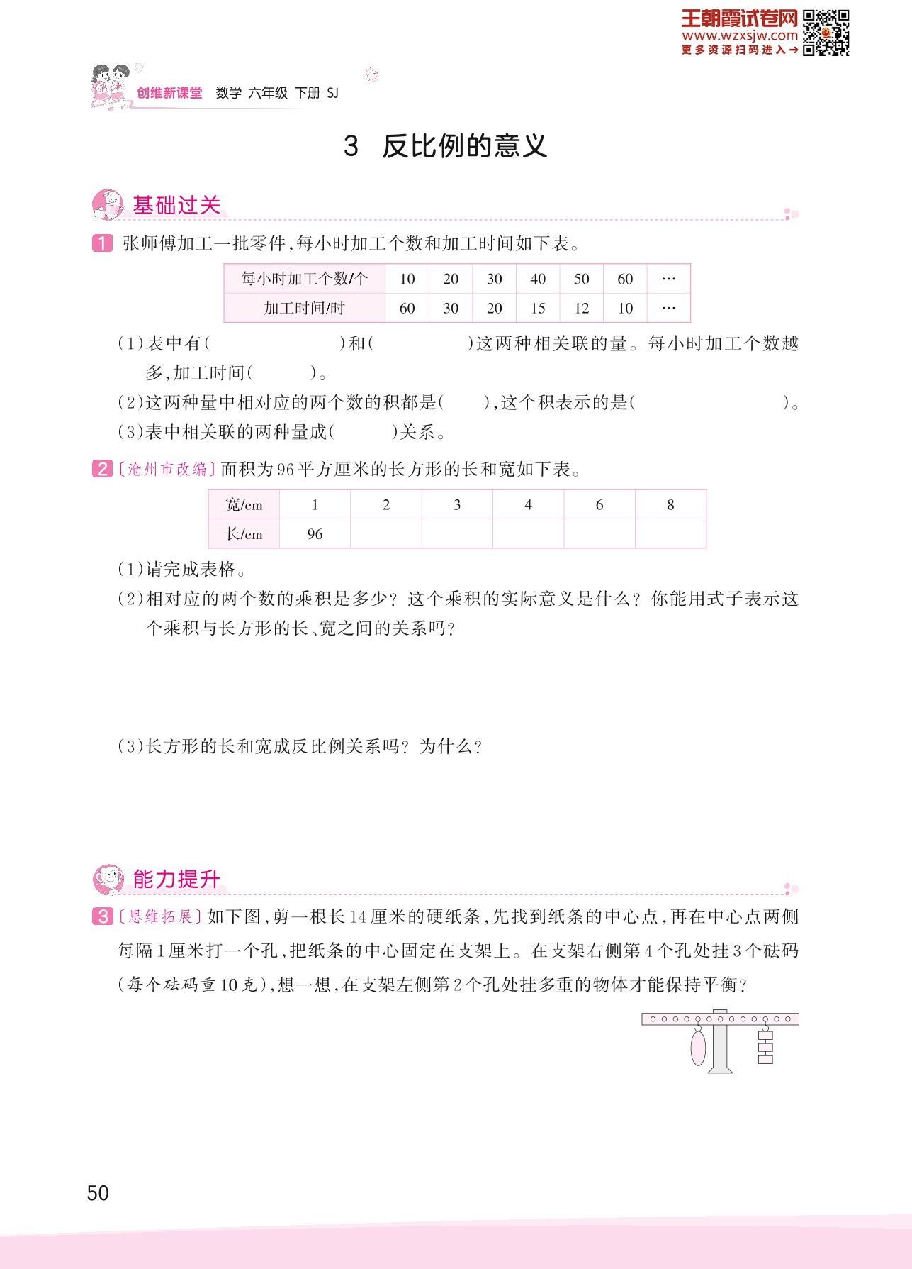 2023下册六年级数学苏教版 六 正比例和反比例——3 反比例的意义