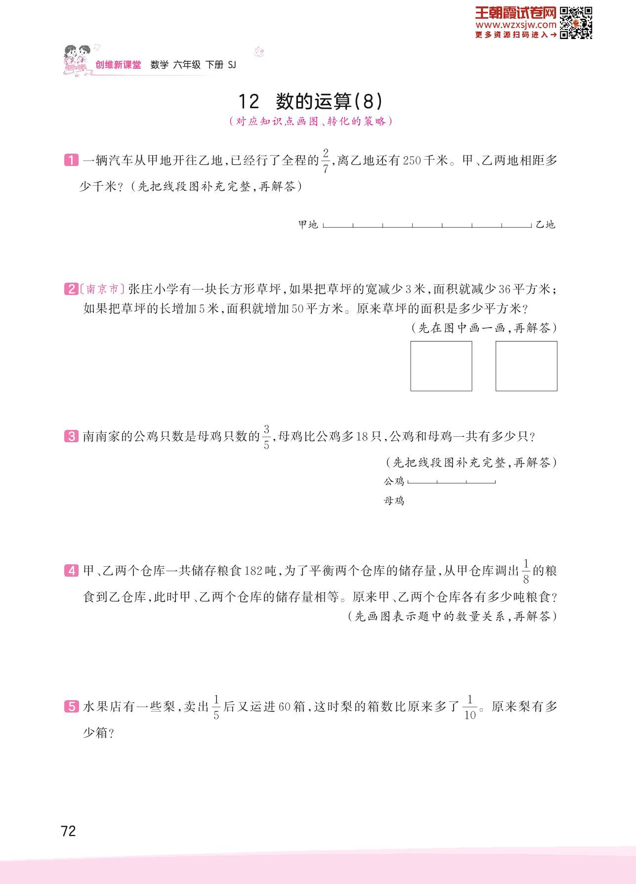2023下册六年级数学苏教版 七 总复习——12 数的运算(8)