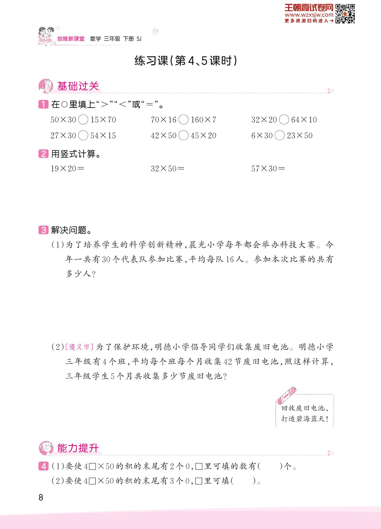 2023下册三年级数学苏教版 一 两位数乘两位数——练习课(第4、5课时)