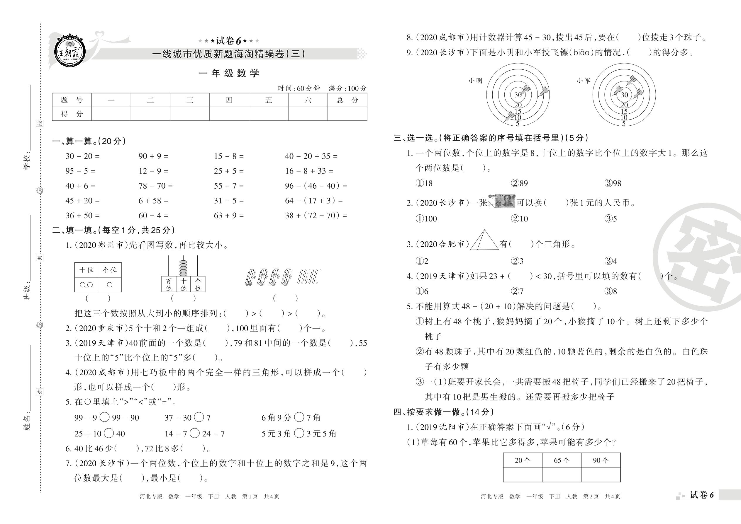 王朝霞海淘期末精编卷一年级下册数学(人教版)_R210802210222【6】