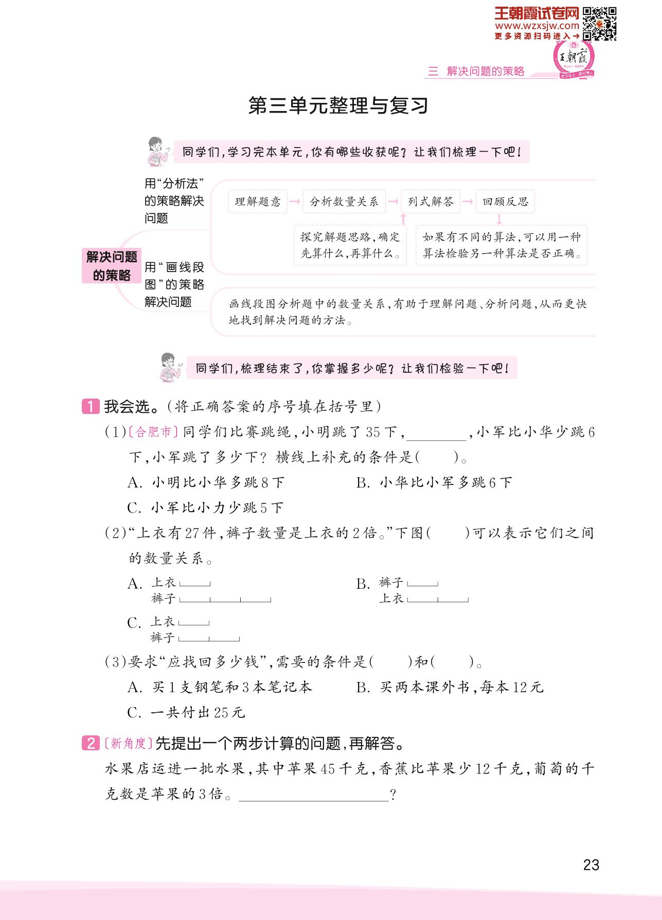 2023下册三年级数学苏教版 第三单元整理与复习