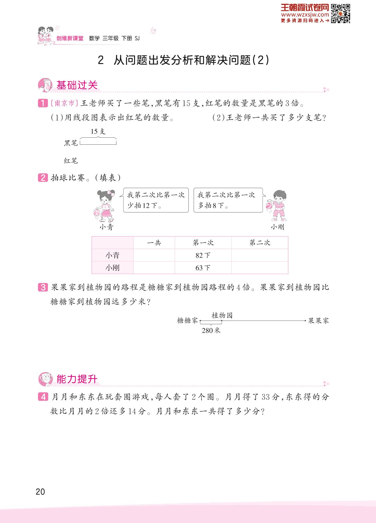 2023下册三年级数学苏教版 三 解决问题的策略——2 从问题出发分析和解决问题(2)