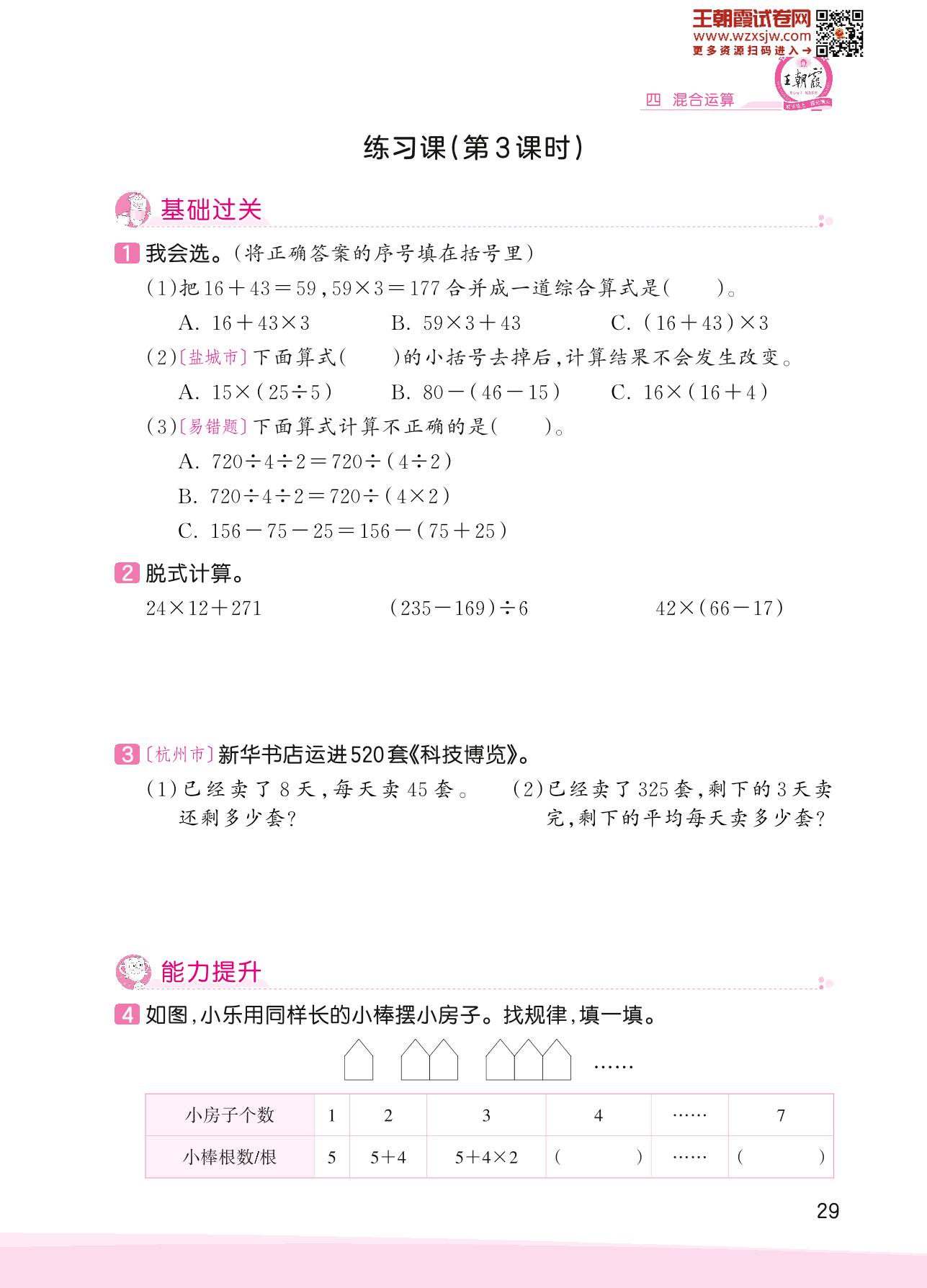 2023下册三年级数学苏教版 四 混合运算——练习课(第3课时)