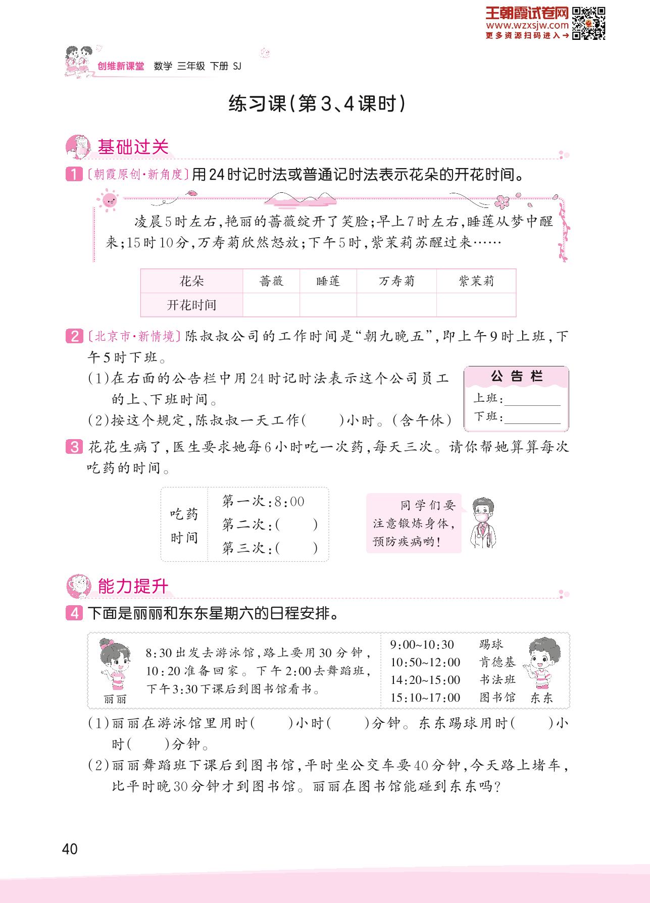 2023下册三年级数学苏教版 五 年、月、日——练习课(第3、4课时)