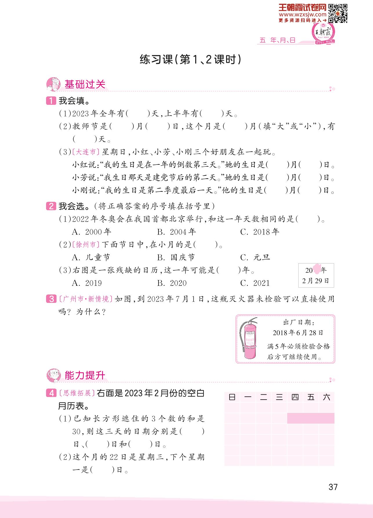 2023下册三年级数学苏教版 五 年、月、日——练习课(第1、2课时)