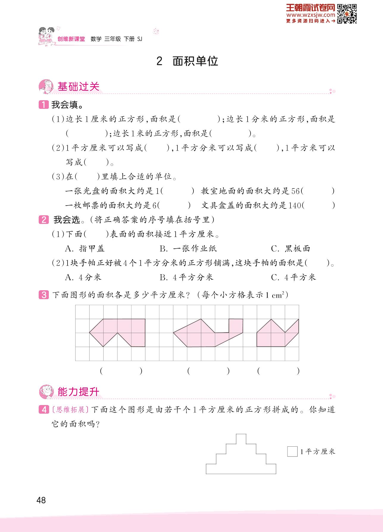 2023下册三年级数学苏教版 六 长方形和正方形的面积——2 面积单位