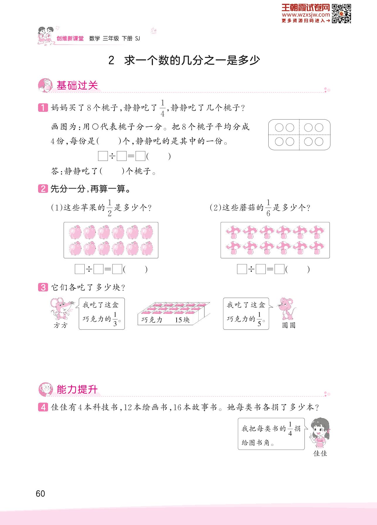 2023下册三年级数学苏教版 七 分数的初步认识(二)——2 求一个数的几分之一是多少