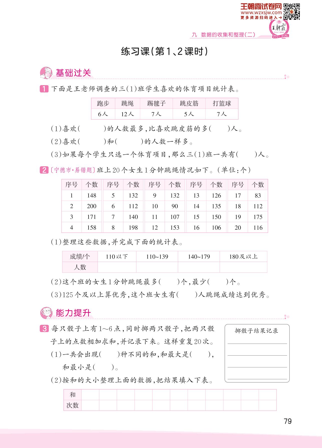2023下册三年级数学苏教版 九 数据的收集和整理(二)——练习课(第1、2课时)
