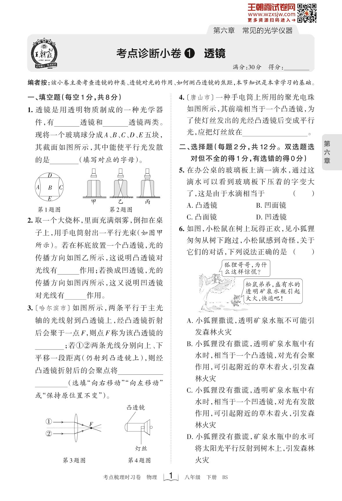 2023下册八年级物理北师版 第六章 考点诊断小卷1 透镜