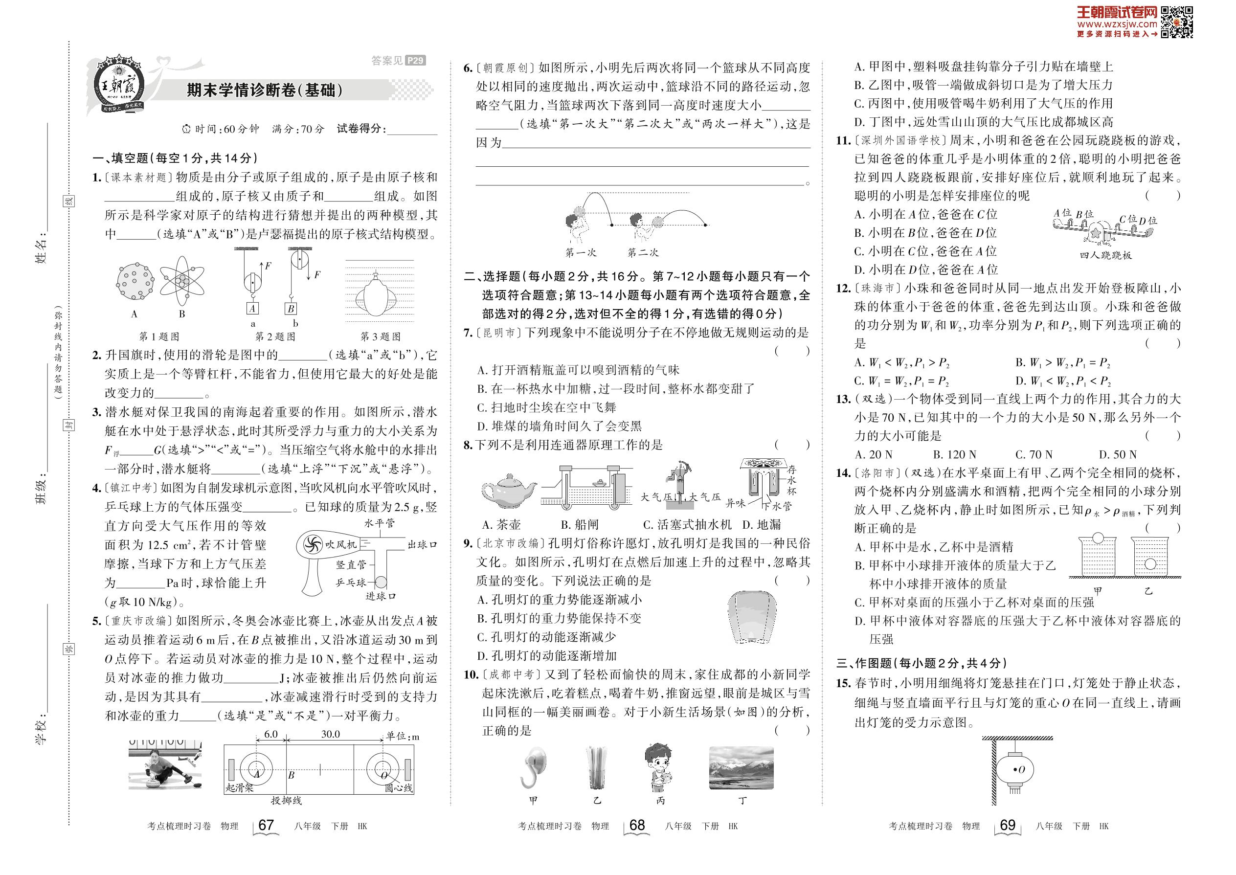2023下册八年级物理沪科版 期末学情诊断卷(基础)
