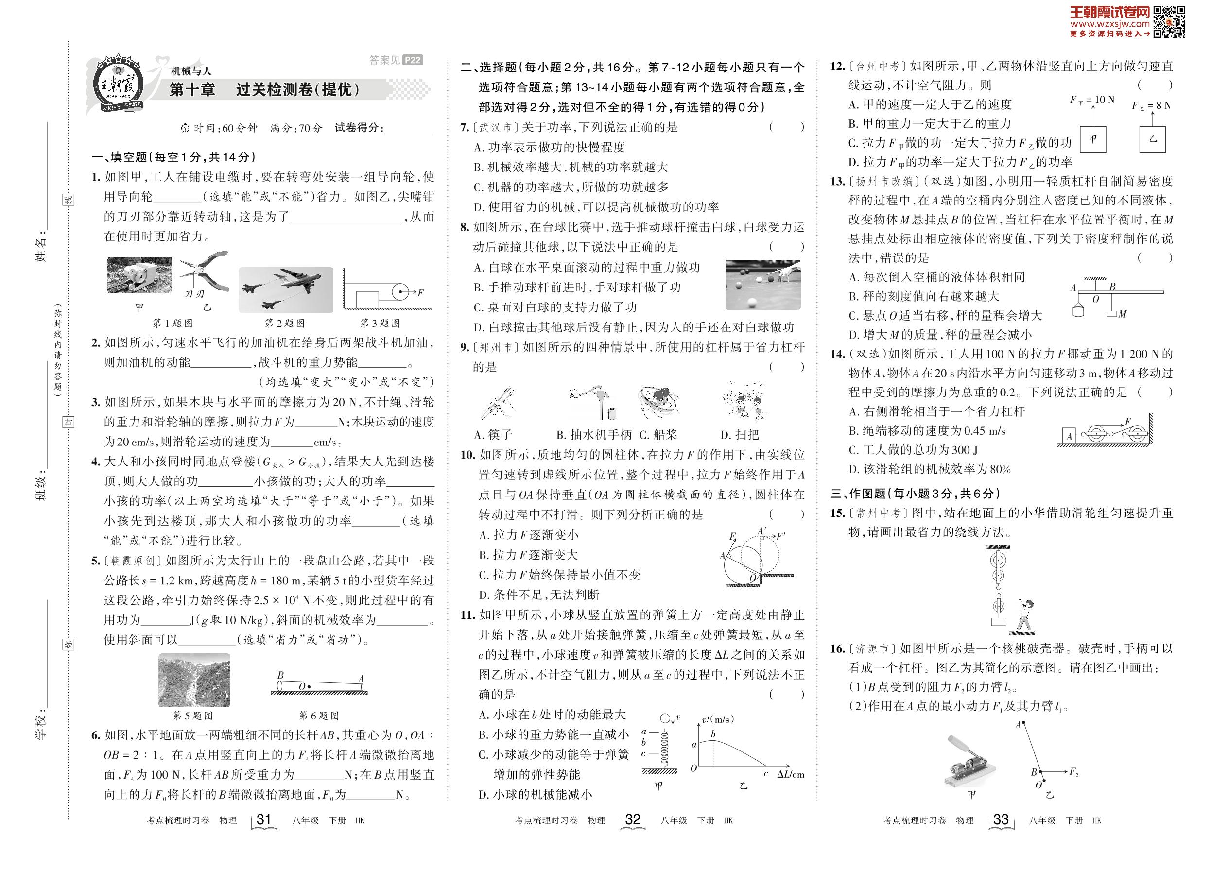 2022-2023学年八年级物理沪科版 第十章 过关检测卷(提优)