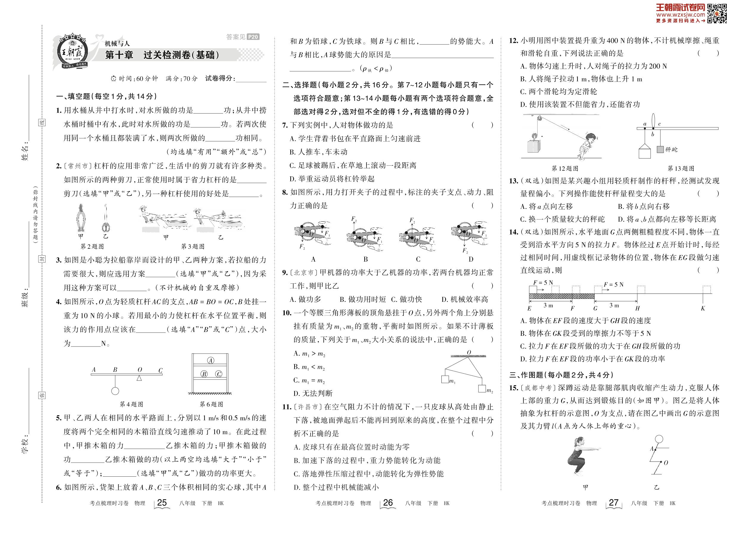 2022-2023学年八年级物理沪科版 第十章 过关检测卷(基础)