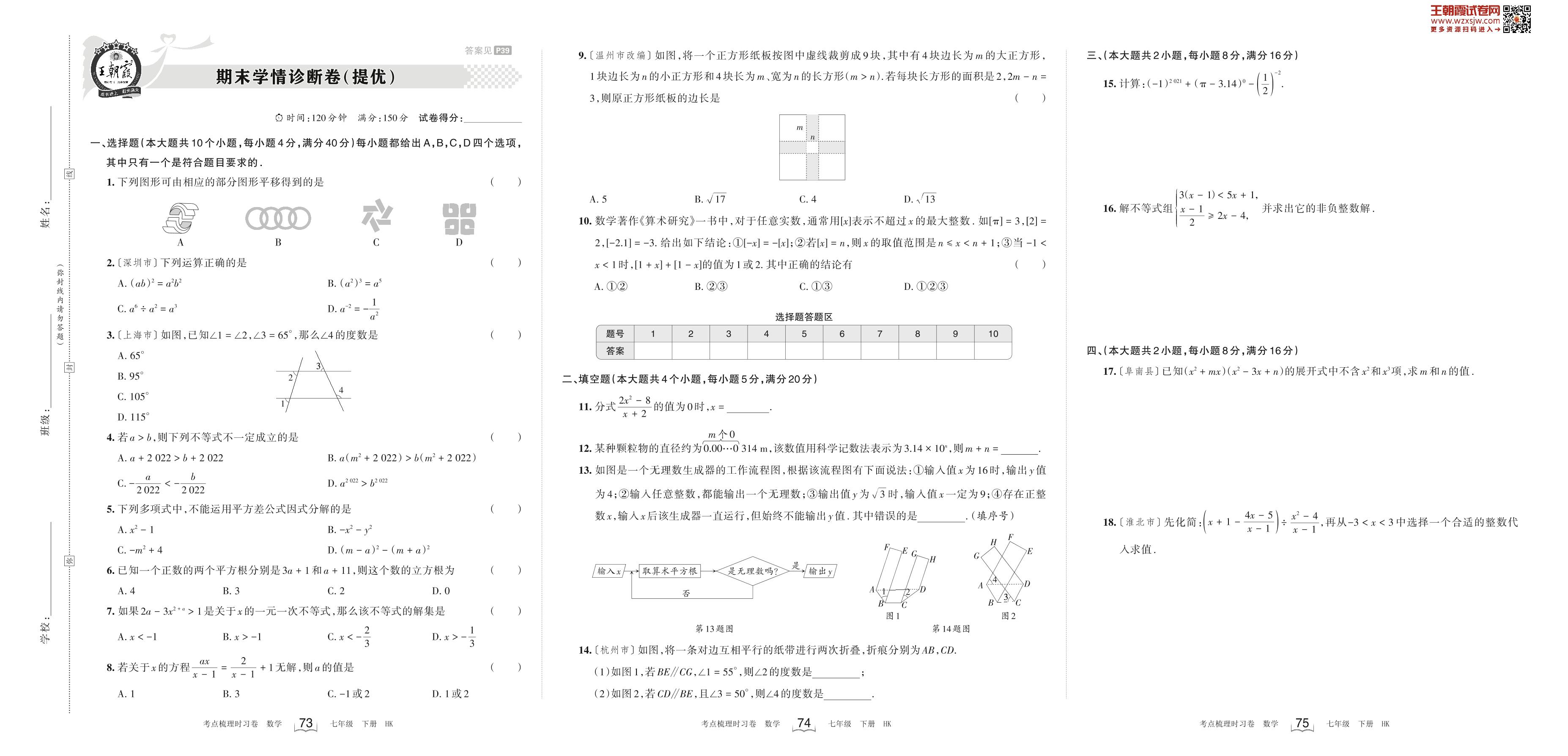 2023下册七年级数学沪科版 期末学情诊断卷(提优)