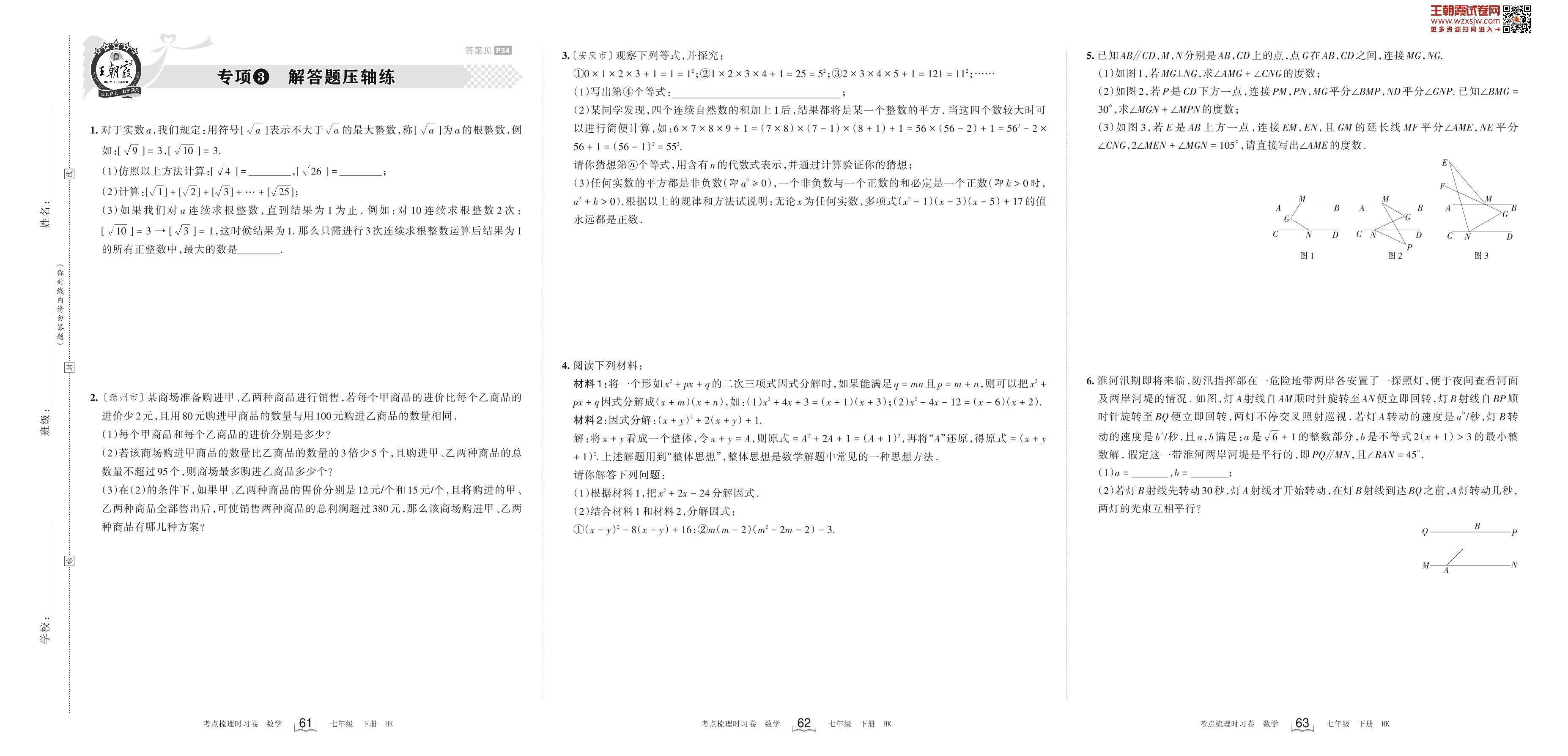 2023下册七年级数学沪科版 专项3 解答题压轴练