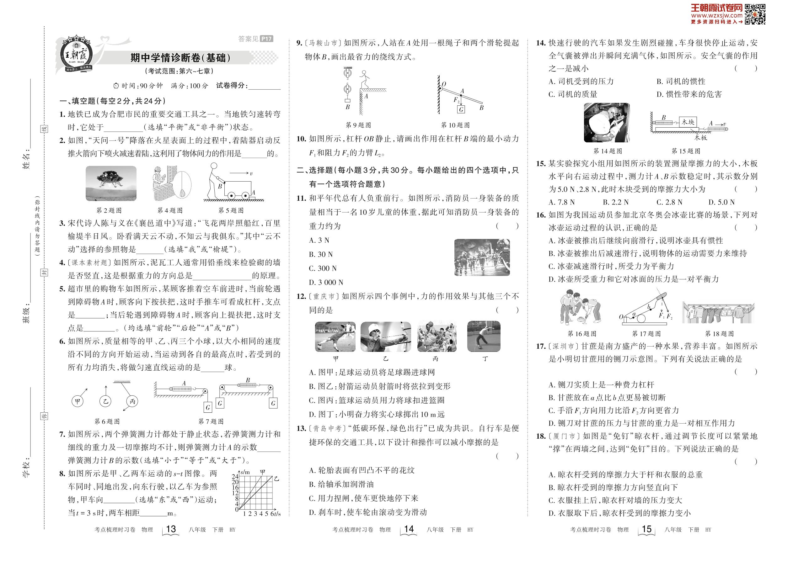 2023下册八年级物理沪粤版 期中学情诊断卷(基础)
