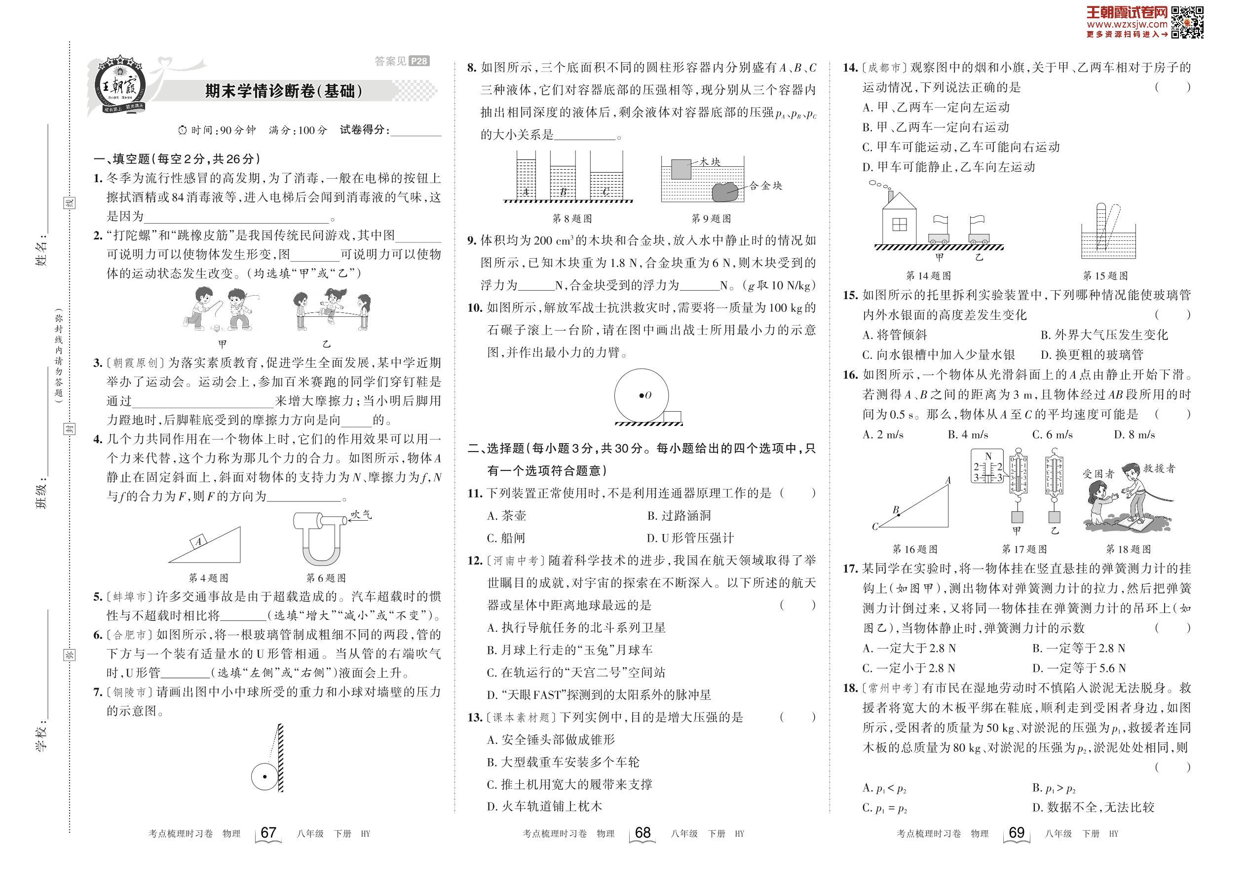 2023下册八年级物理沪粤版 期末学情诊断卷(基础)