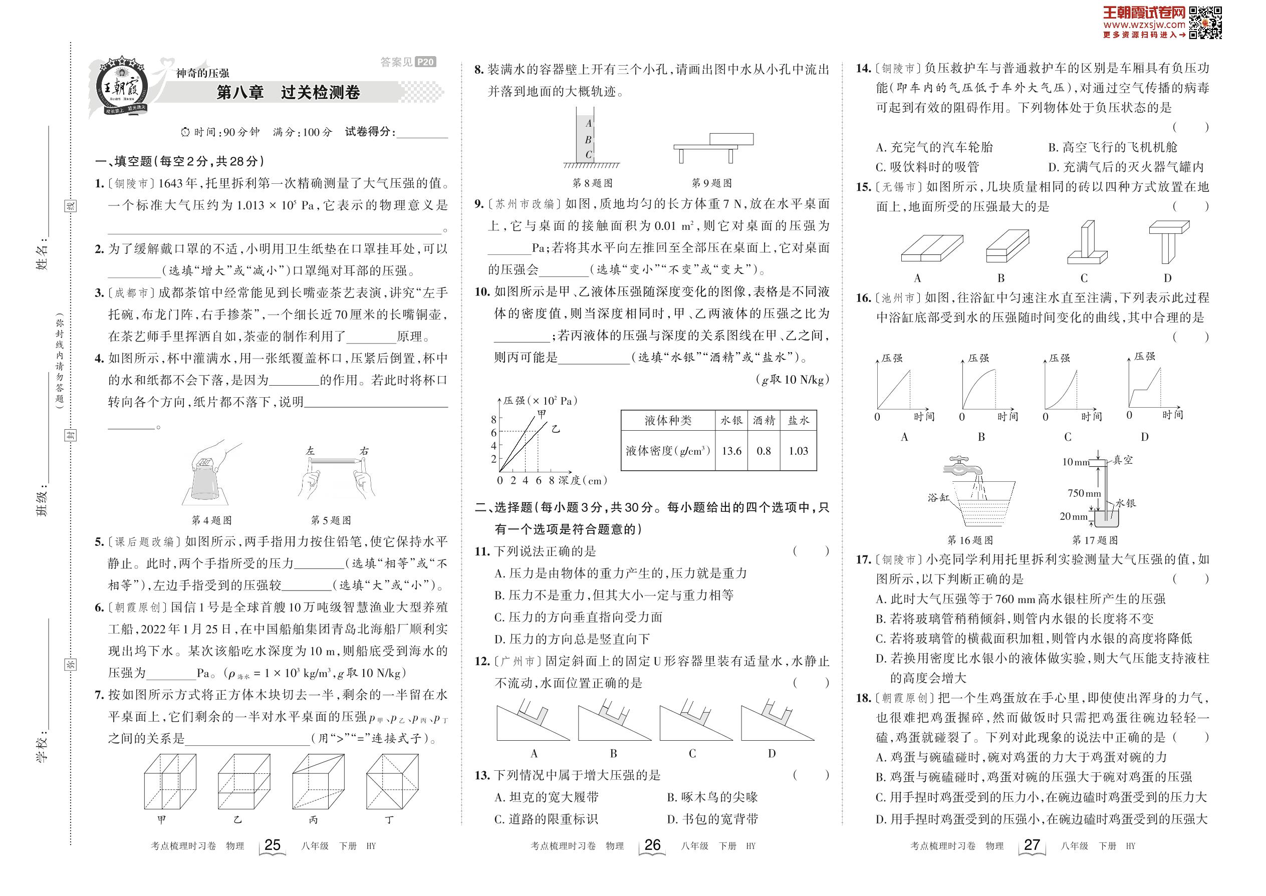 2023下册八年级物理沪粤版 第八章 过关检测卷