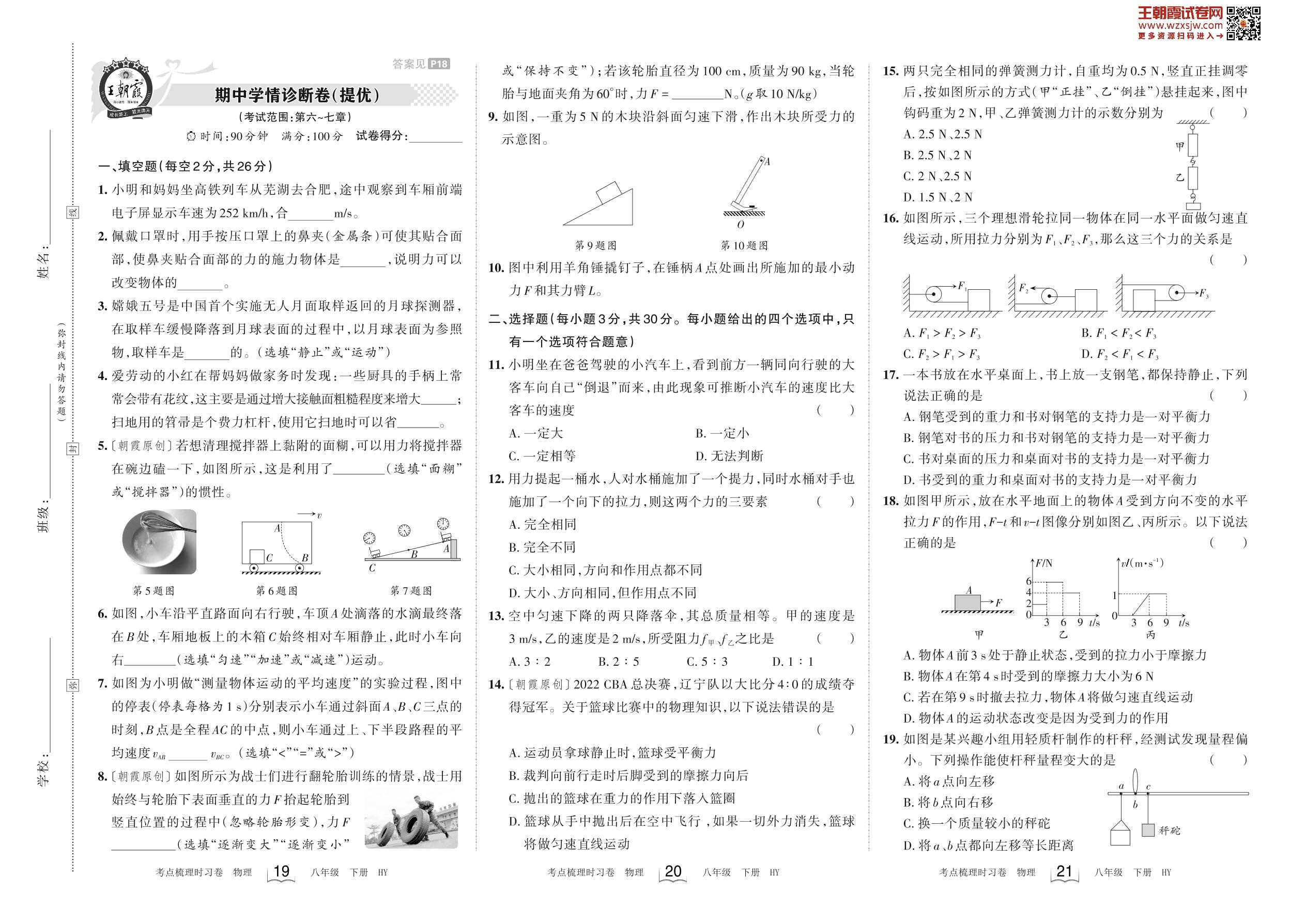 2023下册八年级物理沪粤版 期中学情诊断卷(提优)