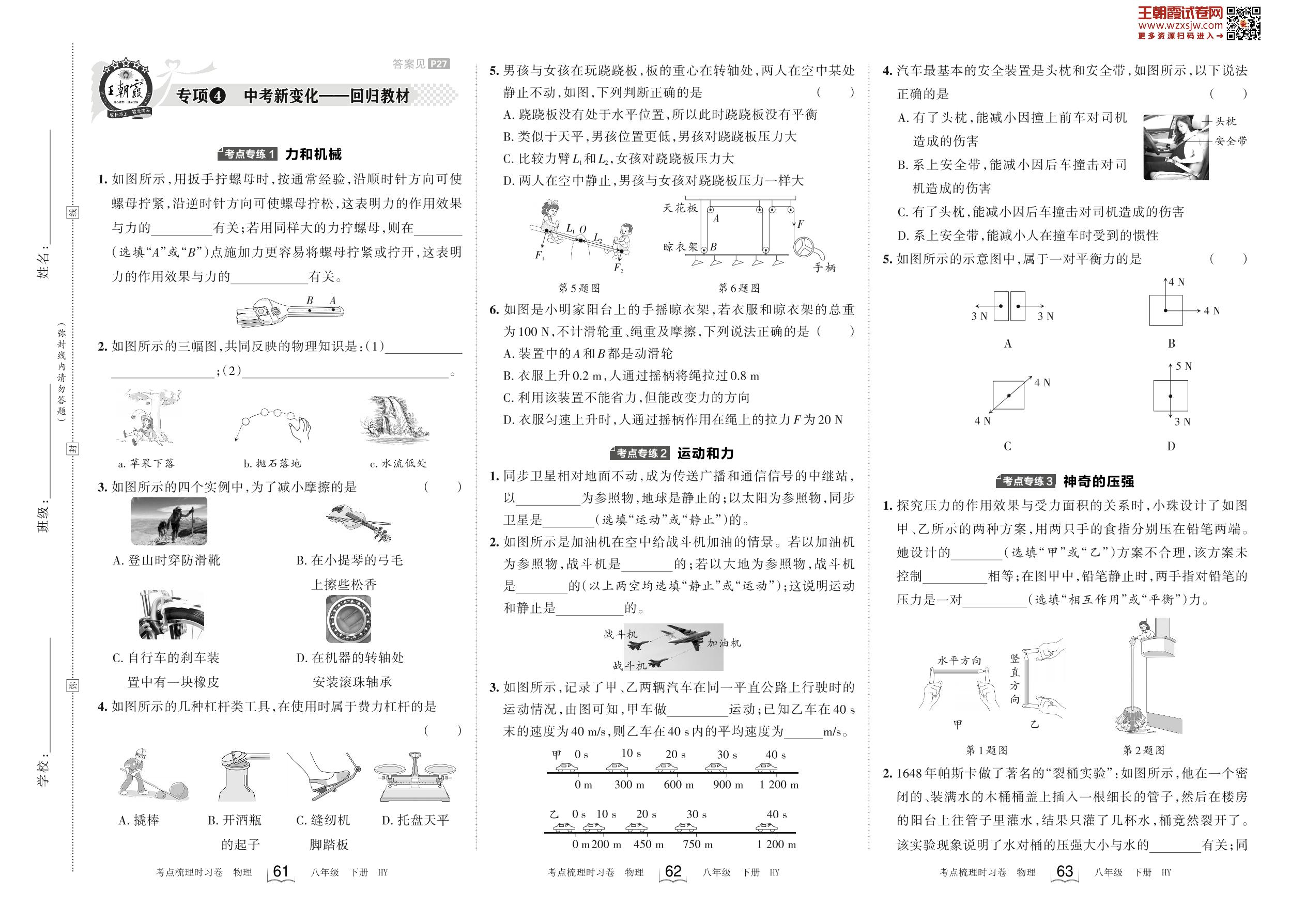 2023下册八年级物理沪粤版 专项4 中考新变化——回归教材