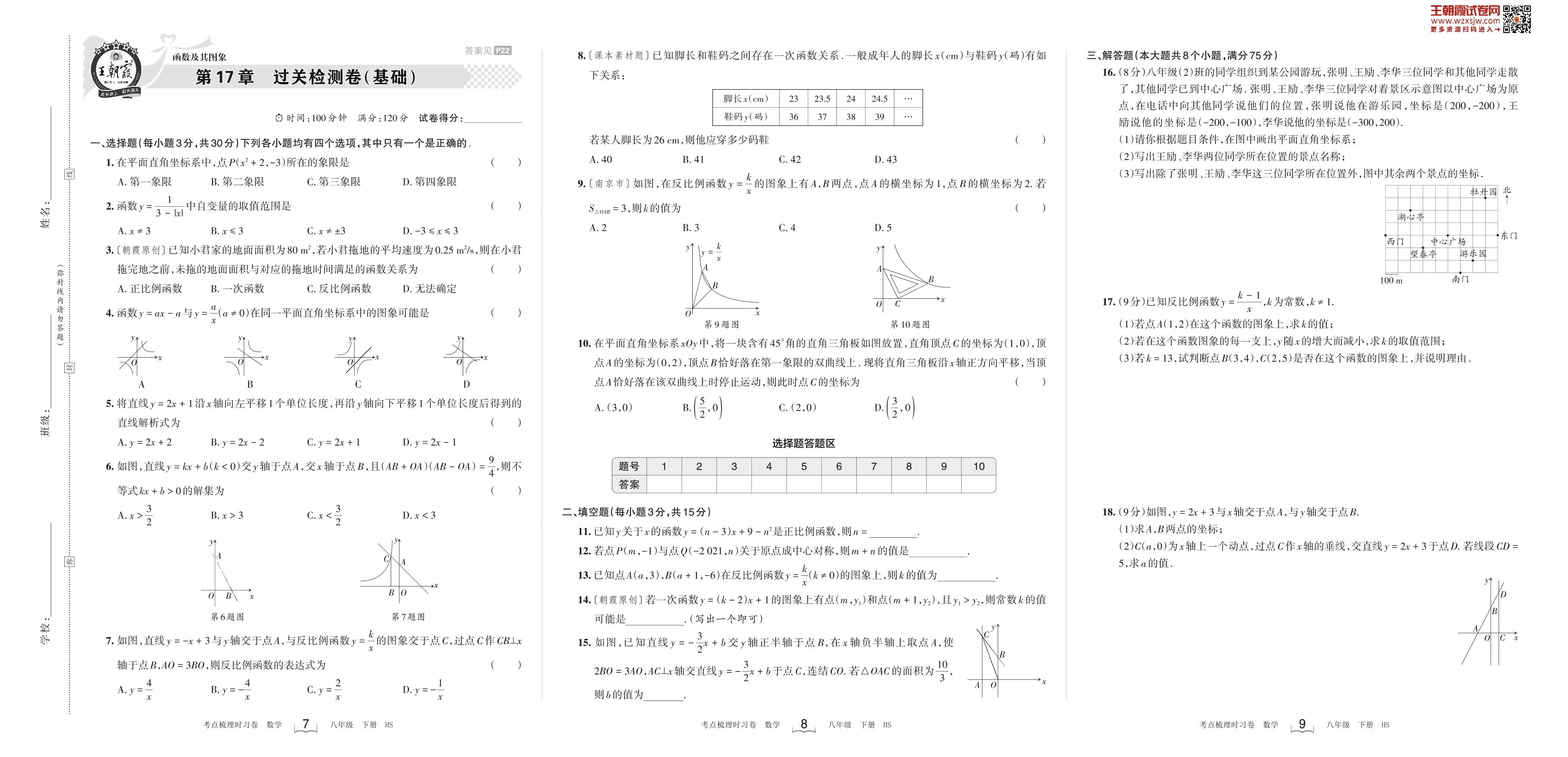 2023下册八年级数学华师版 第17章 过关检测卷(基础)