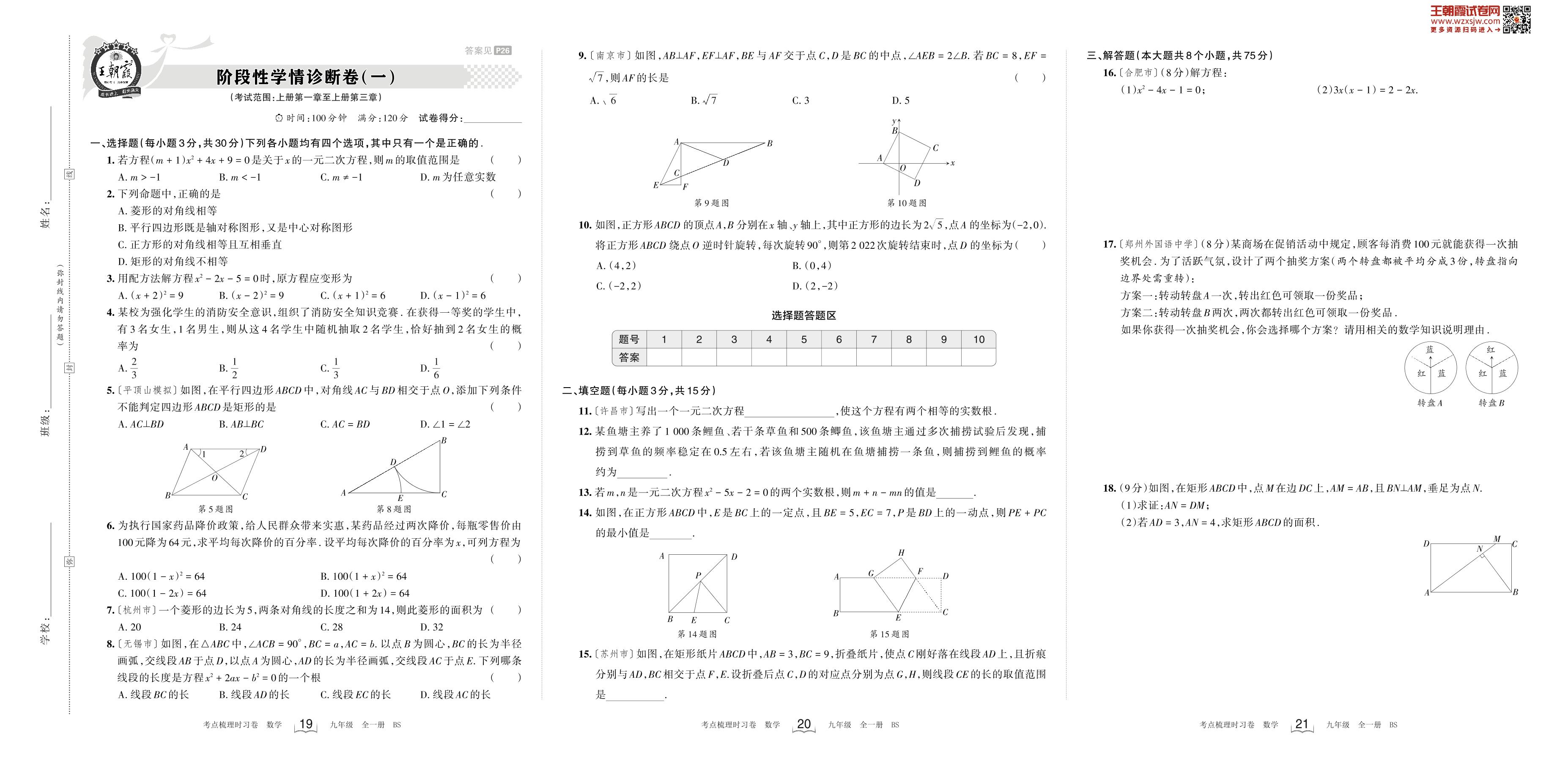 2023上册九年级数学北师版 阶段性学情诊断卷(一)