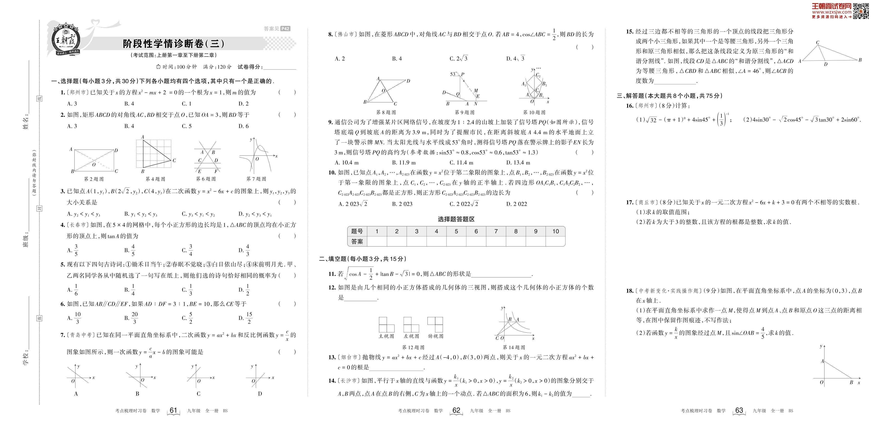 2024下册九年级数学北师版 阶段性学情诊断卷(三)