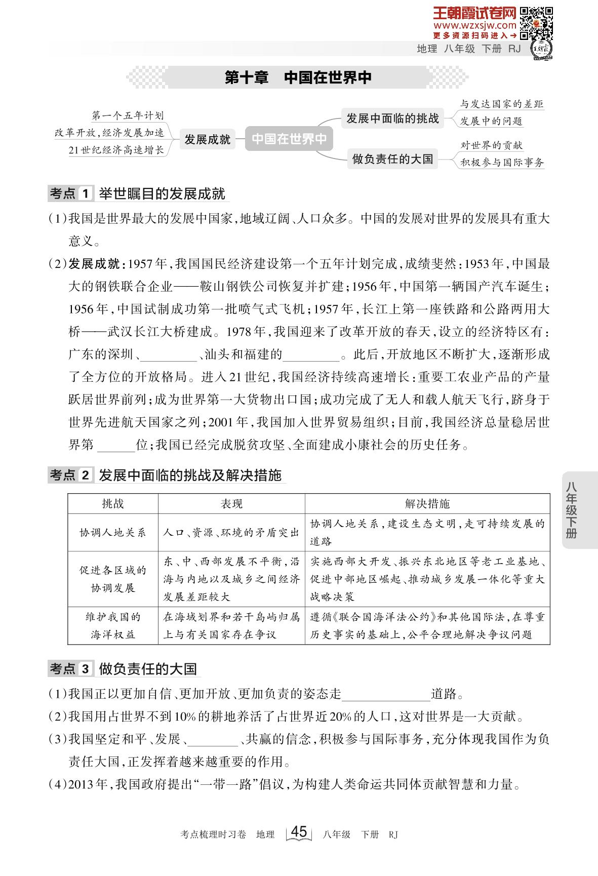 2024下册八年级地理人教版 考点梳理手册——第十章 中国在世界中