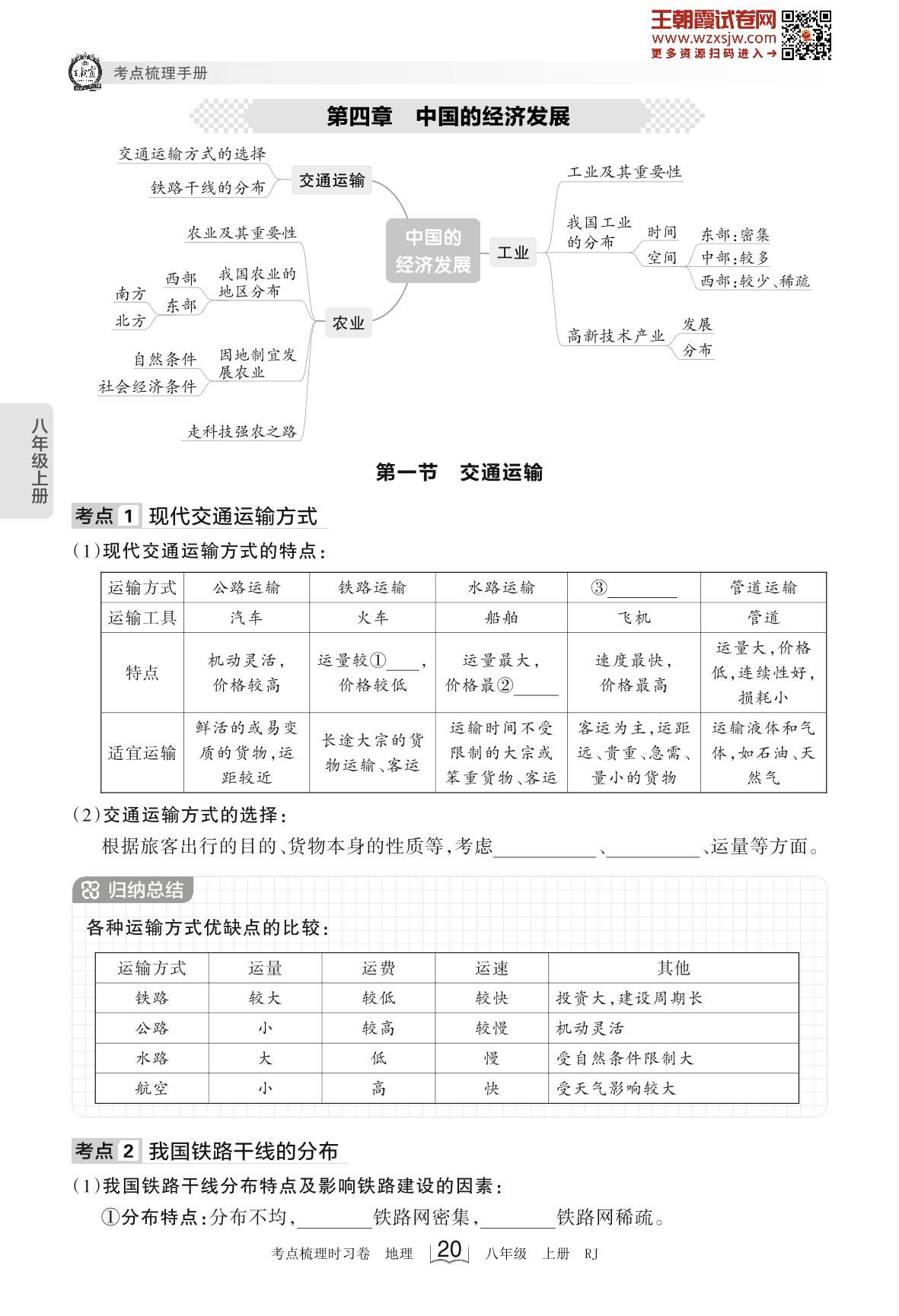2023上册八年级地理人教版 考点梳理手册——第四章 中国的经济发展
