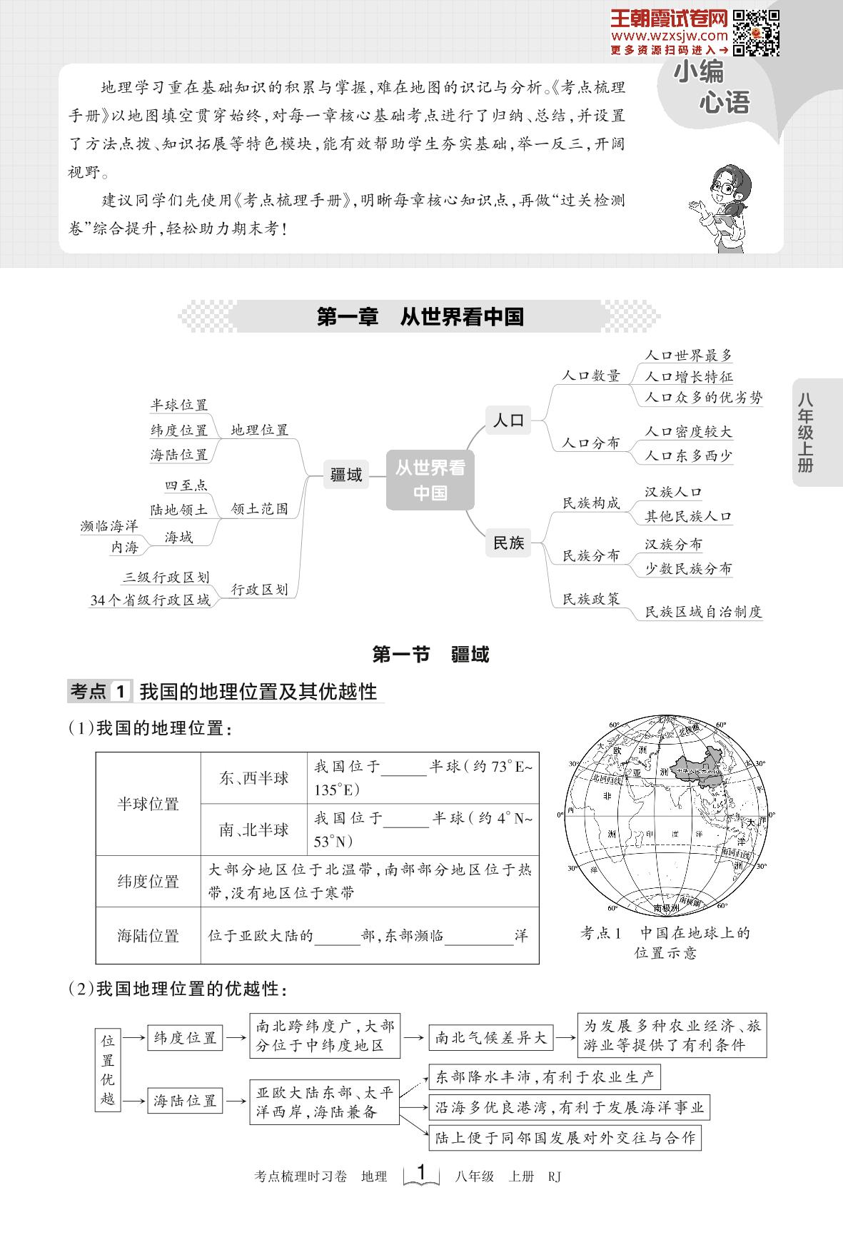 2023上册八年级地理人教版 考点梳理手册——第一章 从世界看中国
