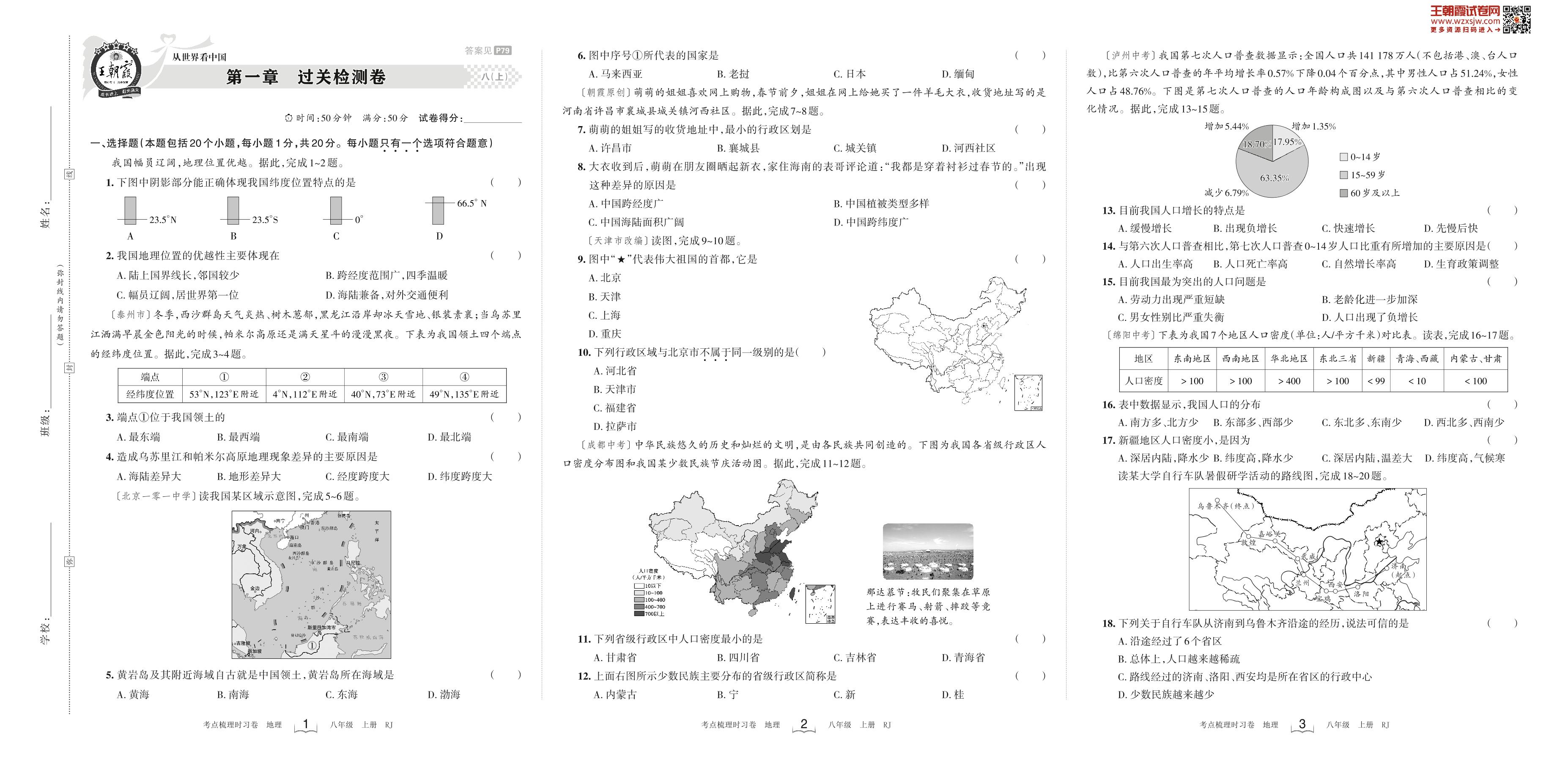 2023上册八年级地理人教版 第一章 过关检测卷