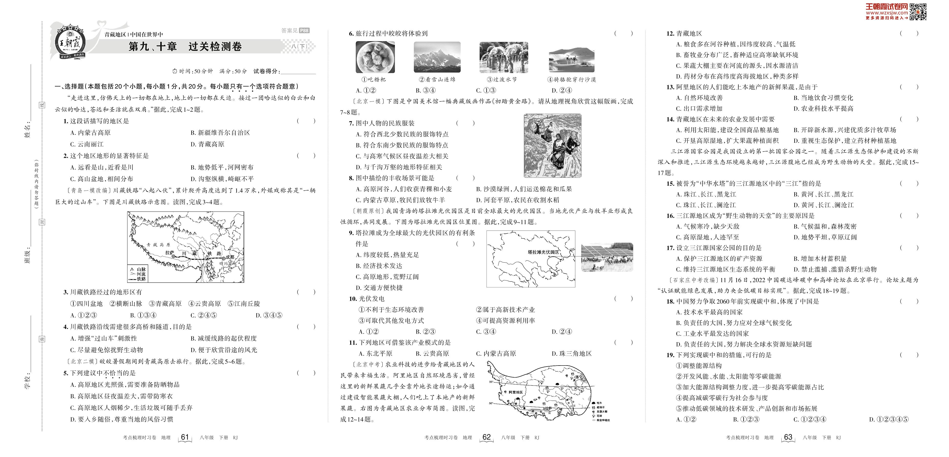 2024下册八年级地理人教版 第九、十章 过关检测卷