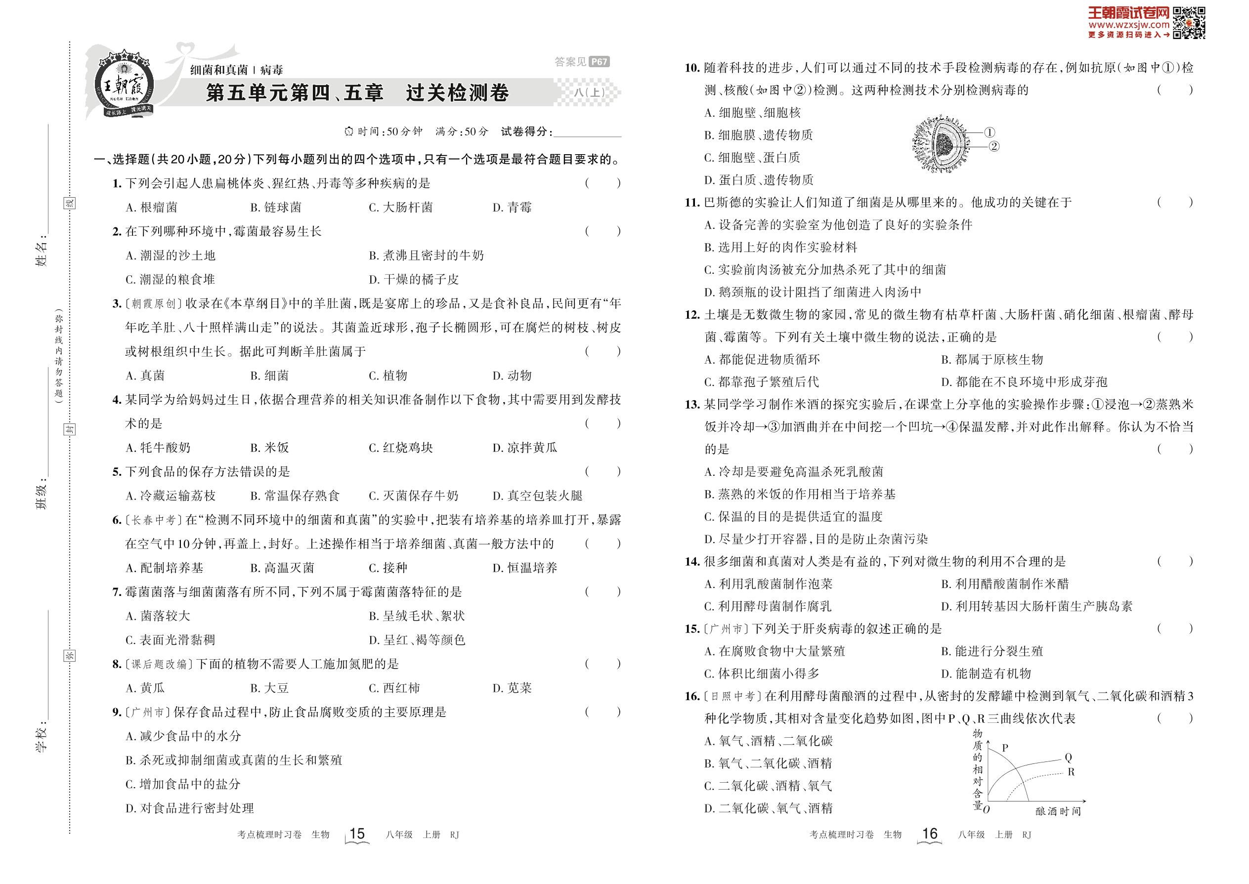 2023上册八年级生物人教版 第五单元第四、五章 过关检测卷