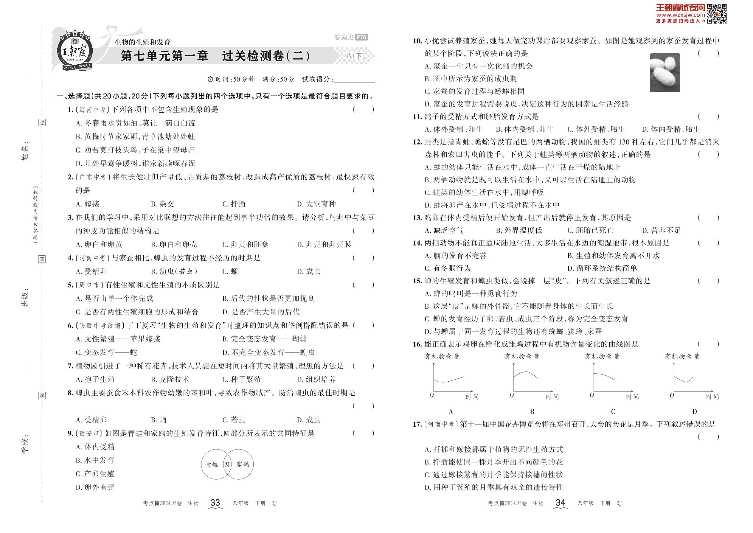 2024下册八年级生物人教版 第七单元第一章 过关检测卷(二)