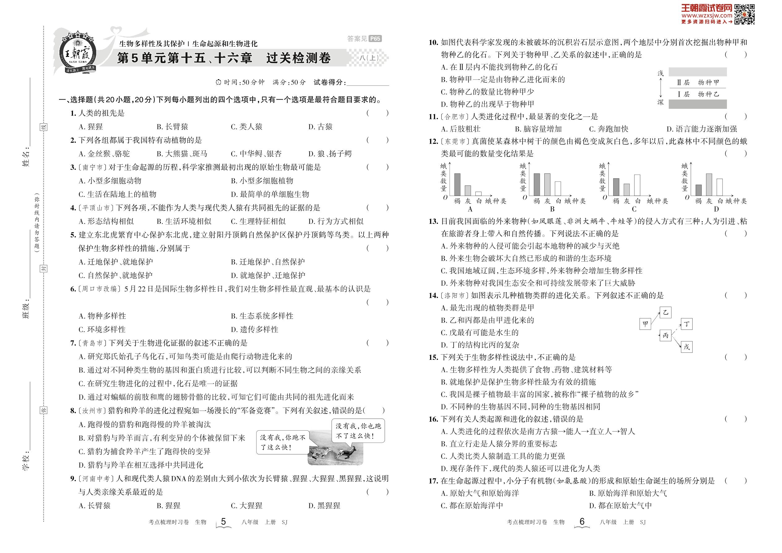 2023上册八年级生物苏教版 第5单元第十五、十六章 过关检测卷