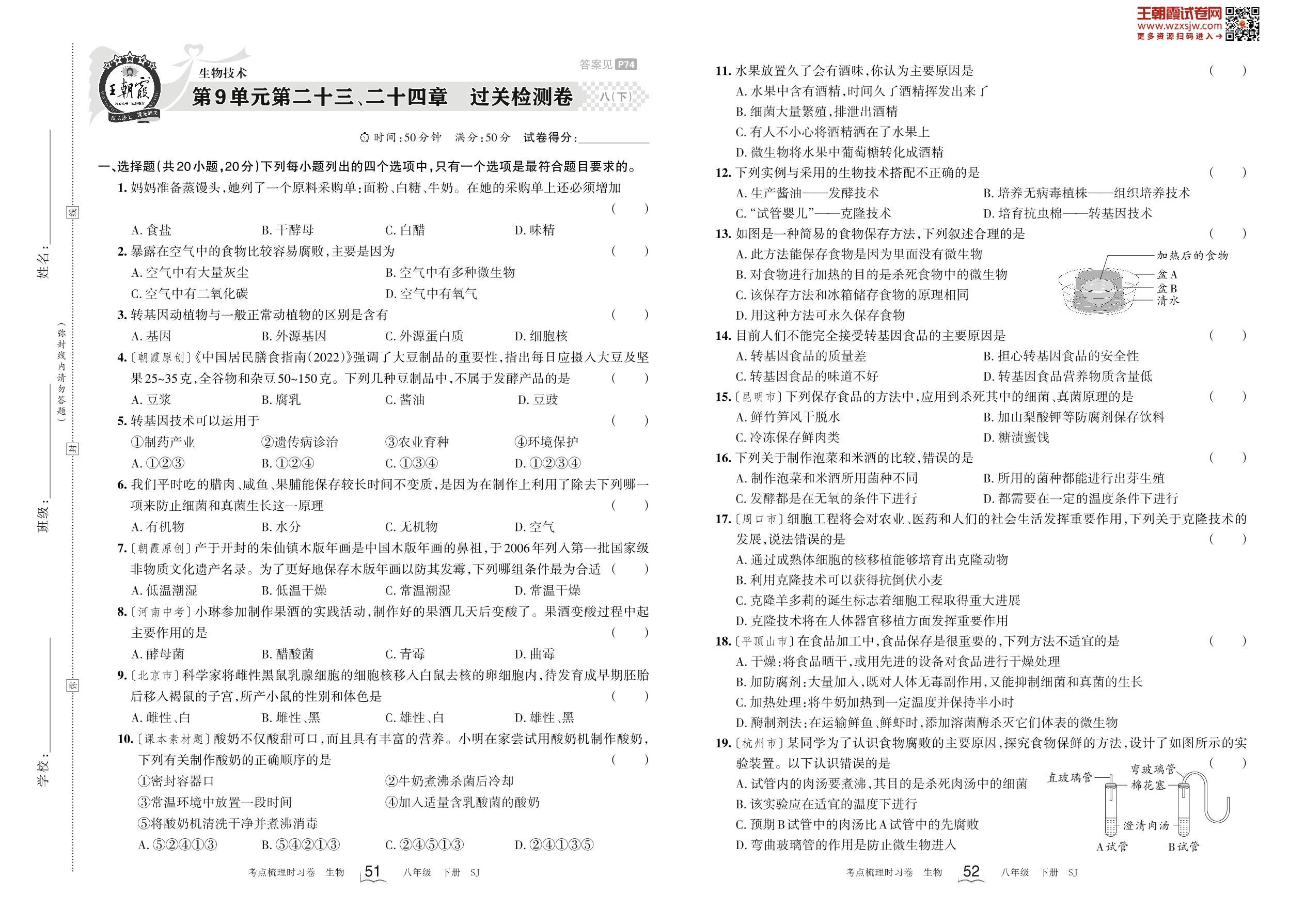 八年级生物苏教版下册单元卷