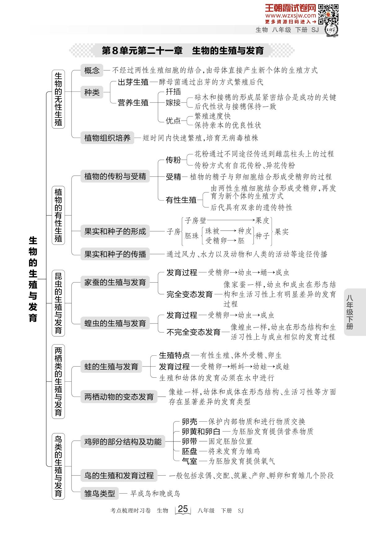 2024下册八年级生物苏教版 考点梳理手册——第8单元第二十一章 生物的生殖与发育