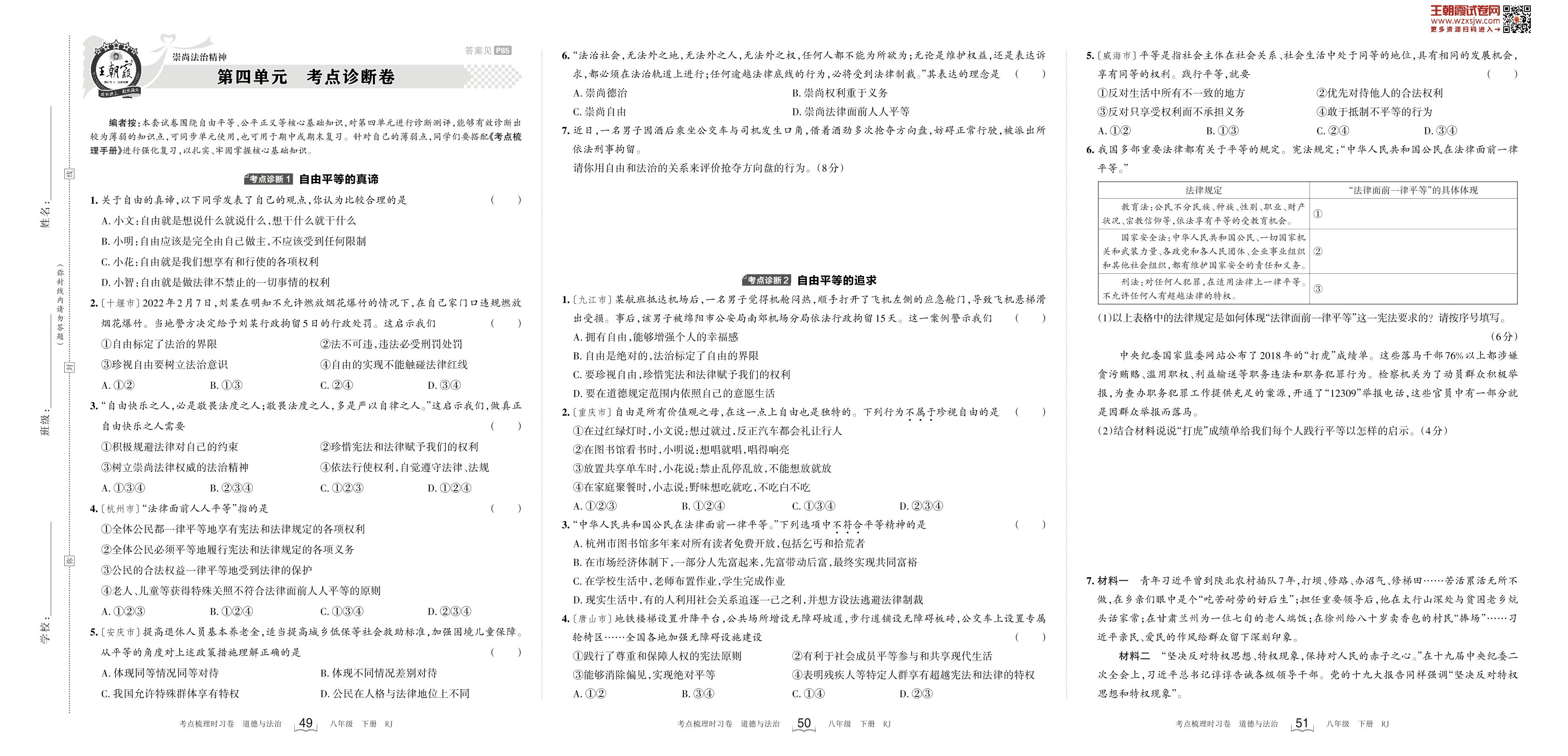 八年级道德与法治人教版下册单元卷