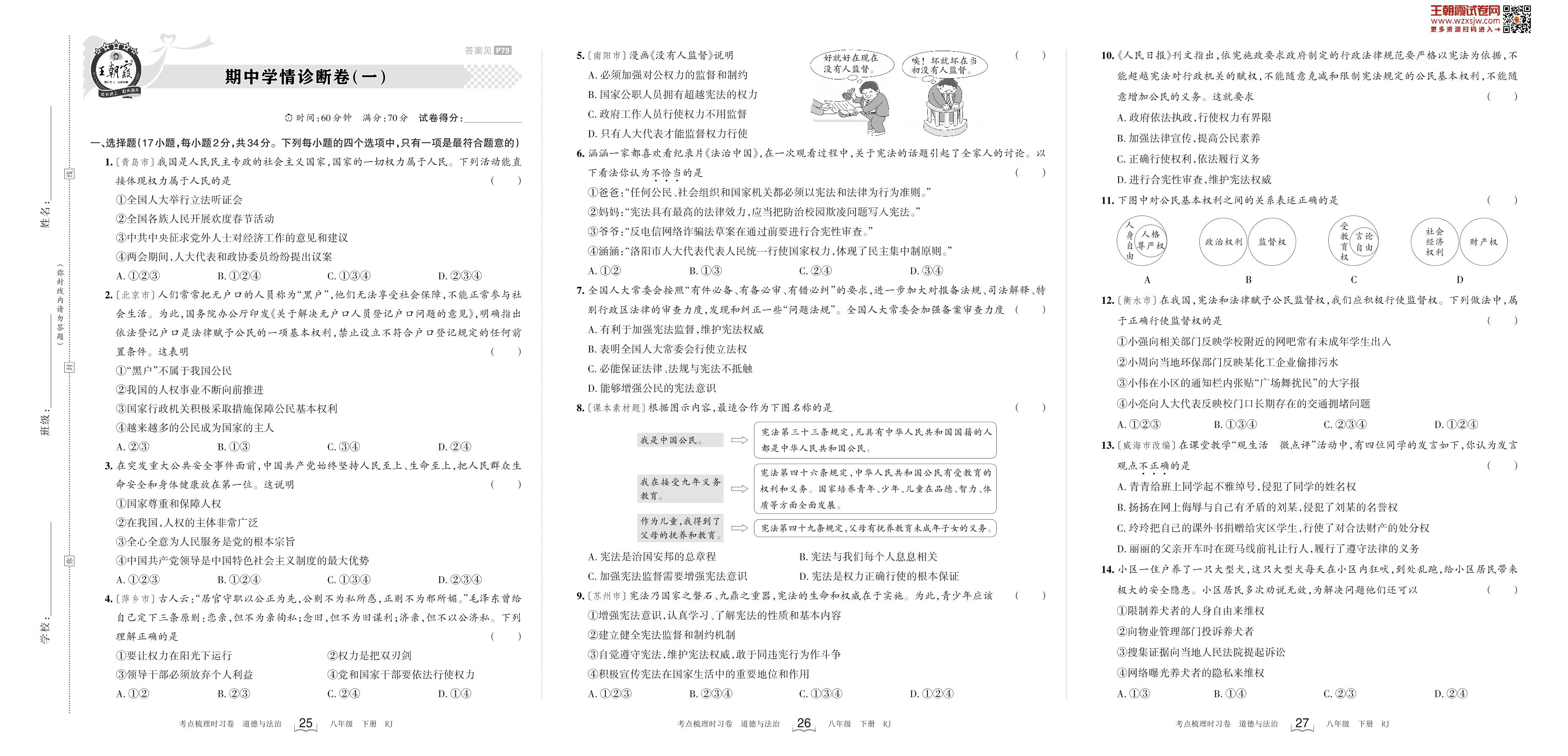 八年级道德与法治人教版下册期中卷