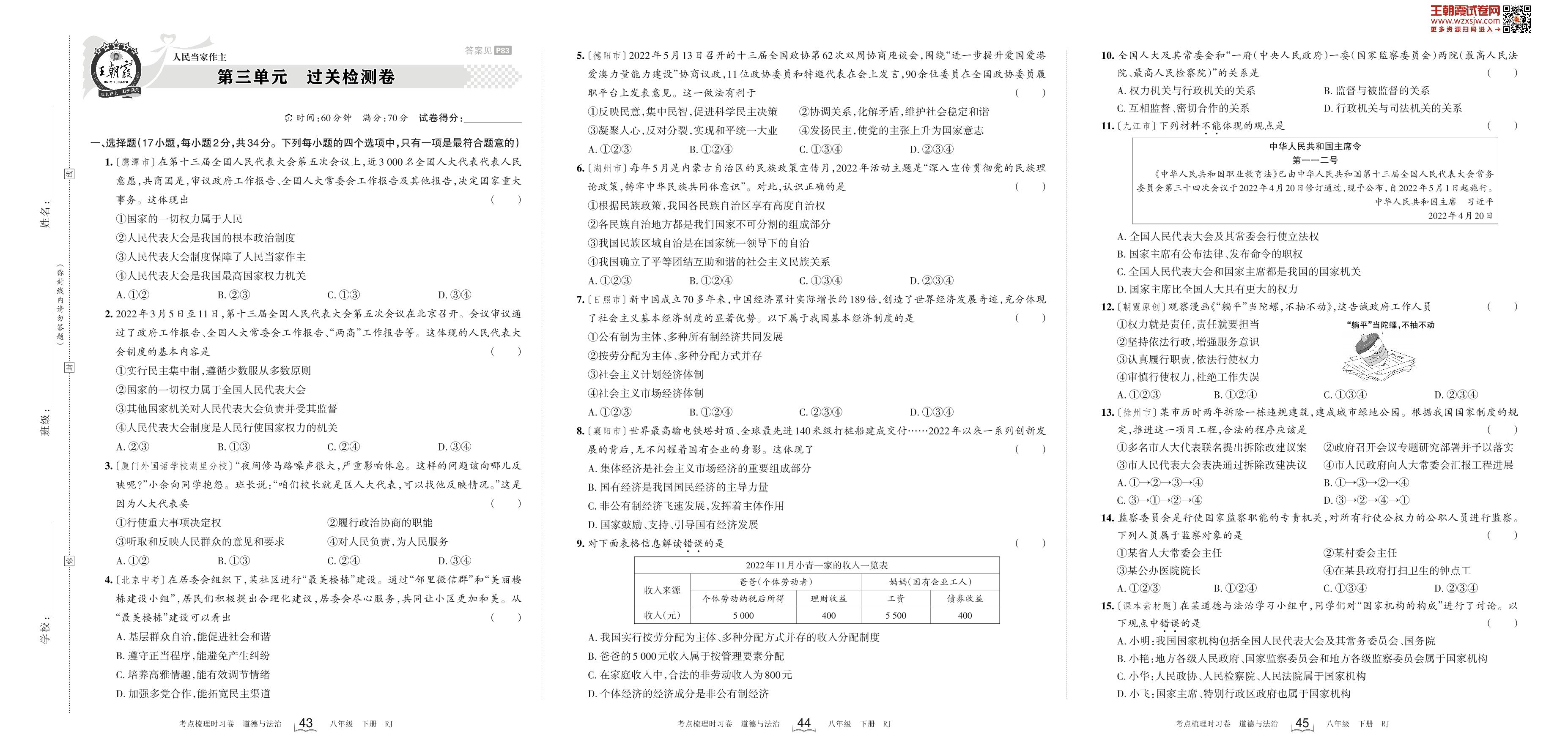2023下册八年级道德与法治人教版 第三单元 过关检测卷