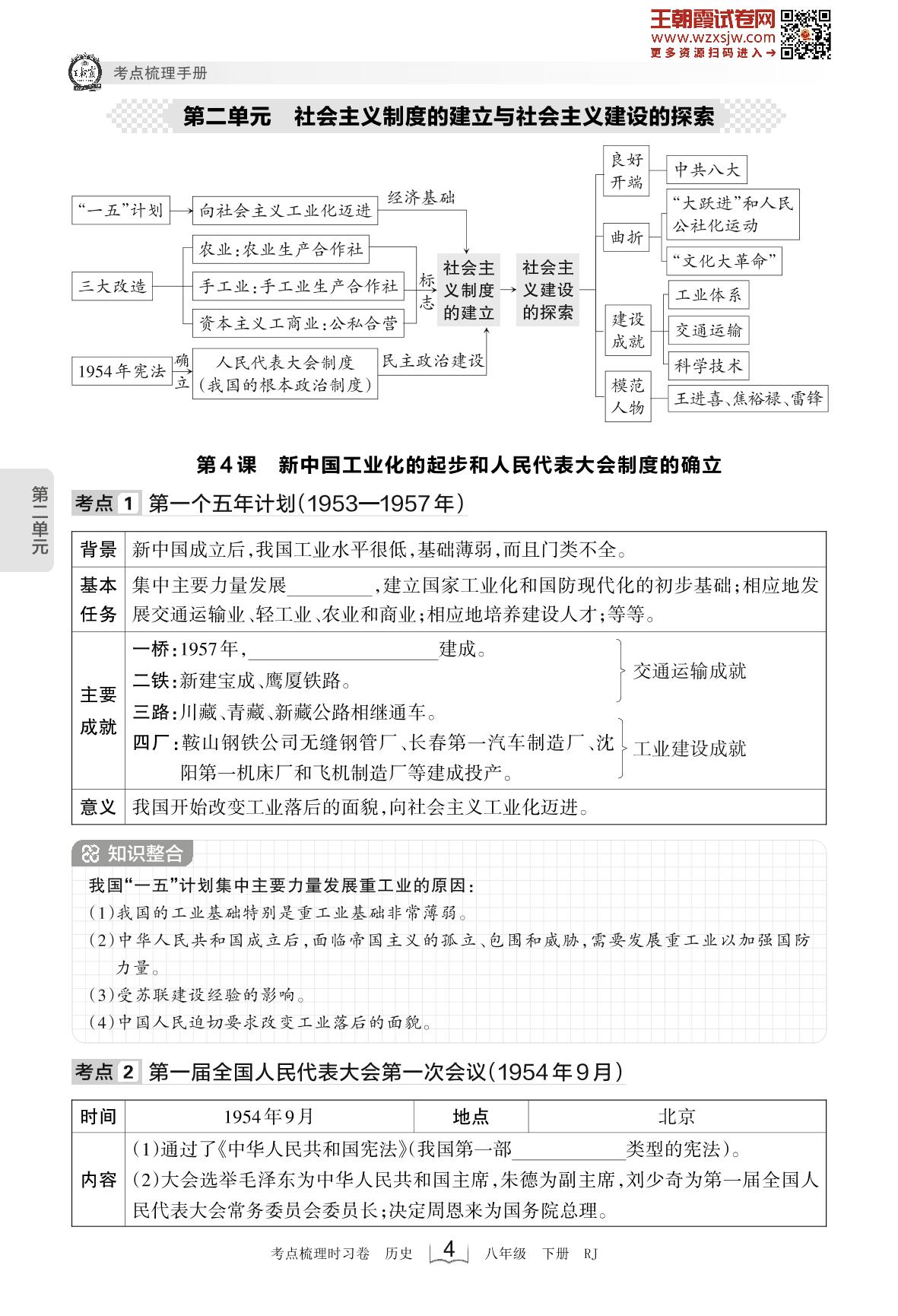 2023下册八年级历史人教版 考点梳理手册——第二单元 社会主义制度的建立与社会主义建设的探索