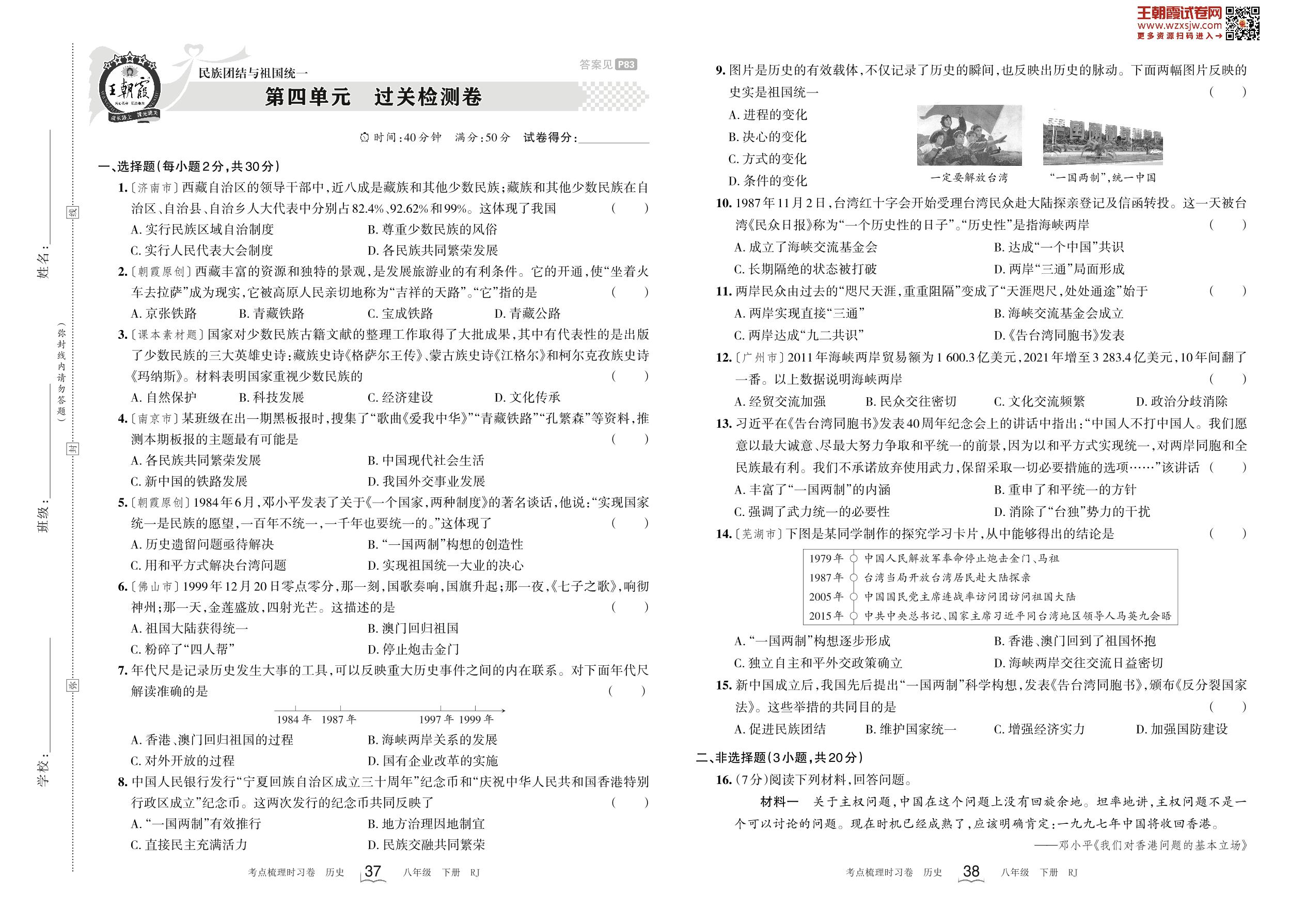 八年级历史人教版下册单元卷
