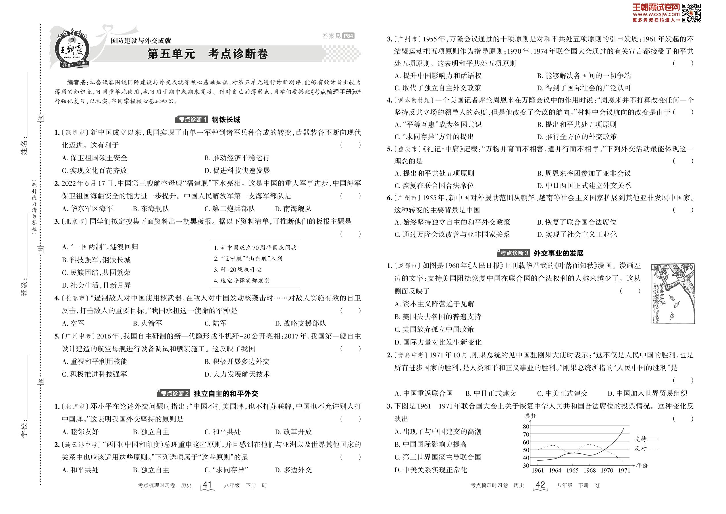 2023下册八年级历史人教版 第五单元 考点诊断卷