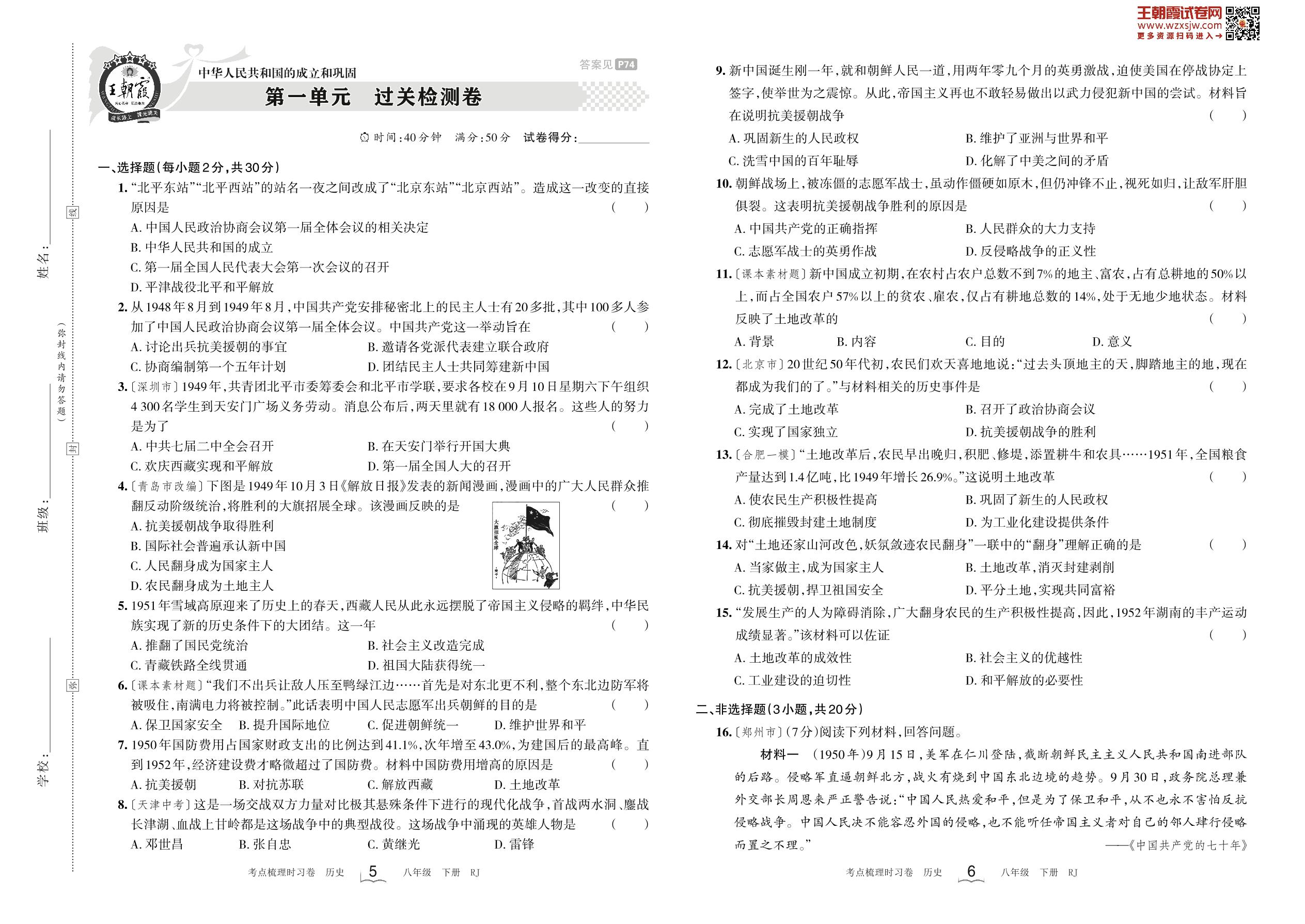 八年级历史人教版下册单元卷