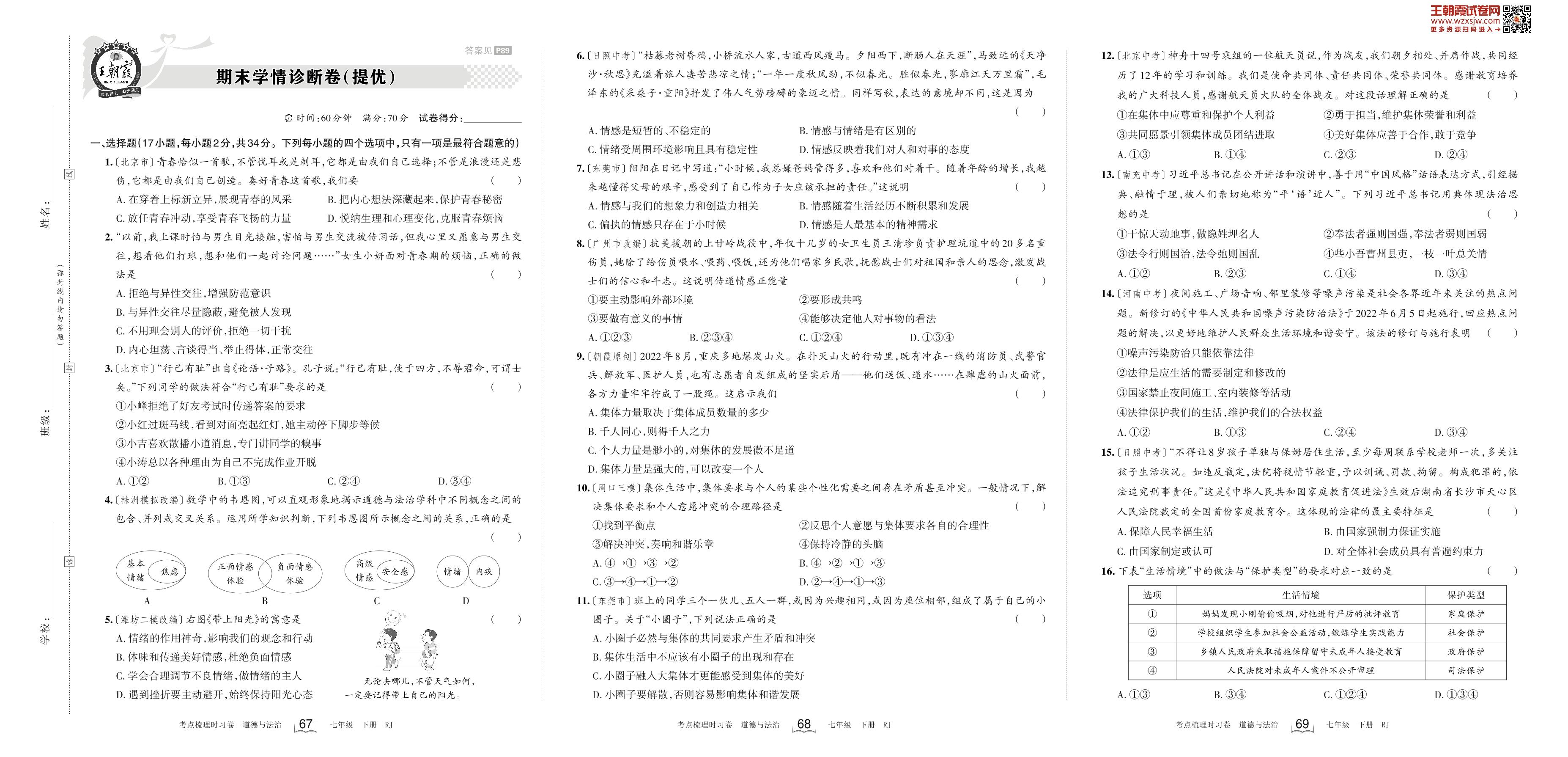 2023下册七年级道德与法治人教版 期末学情诊断卷(提优)