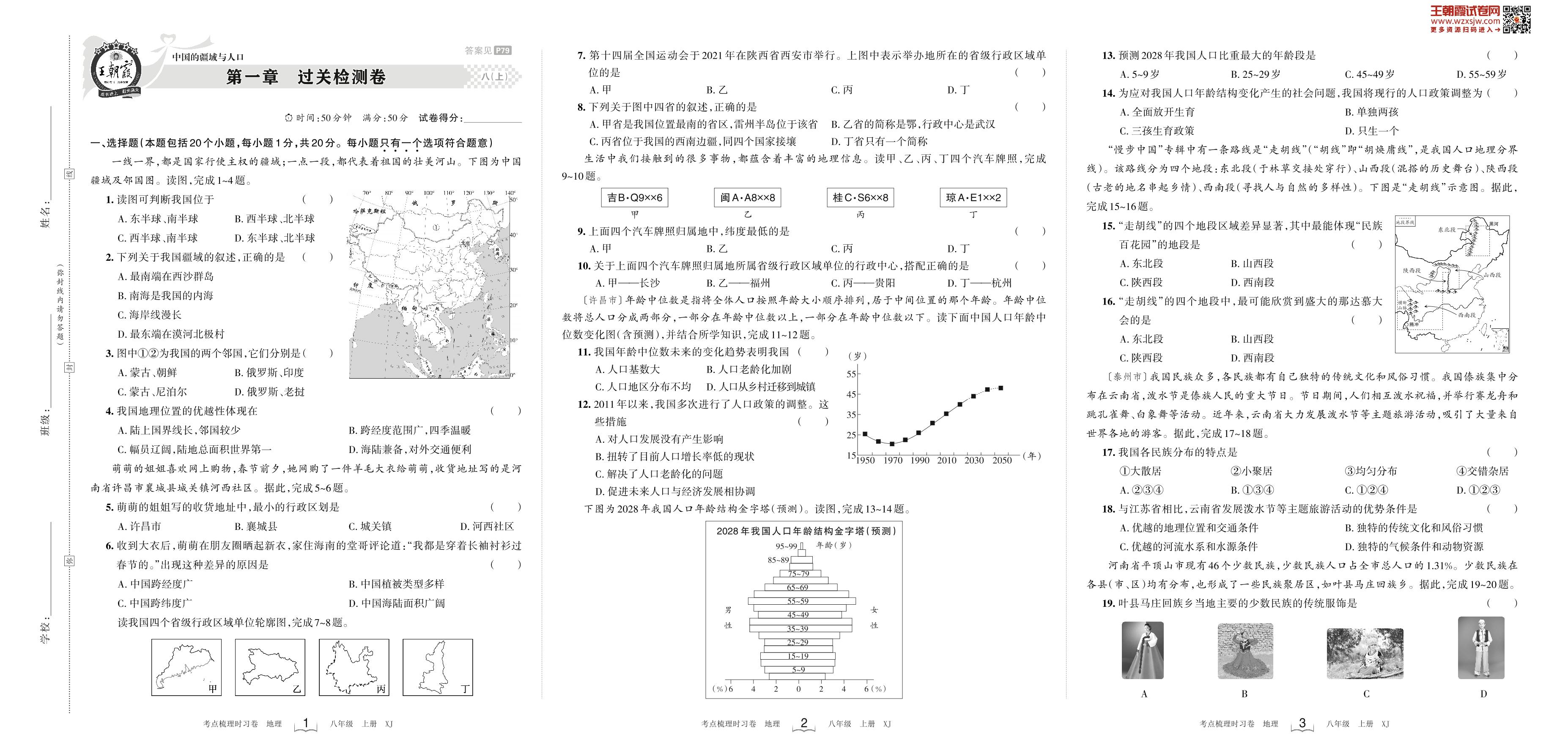 2023上册八年级地理湘教版 第一章 过关检测卷