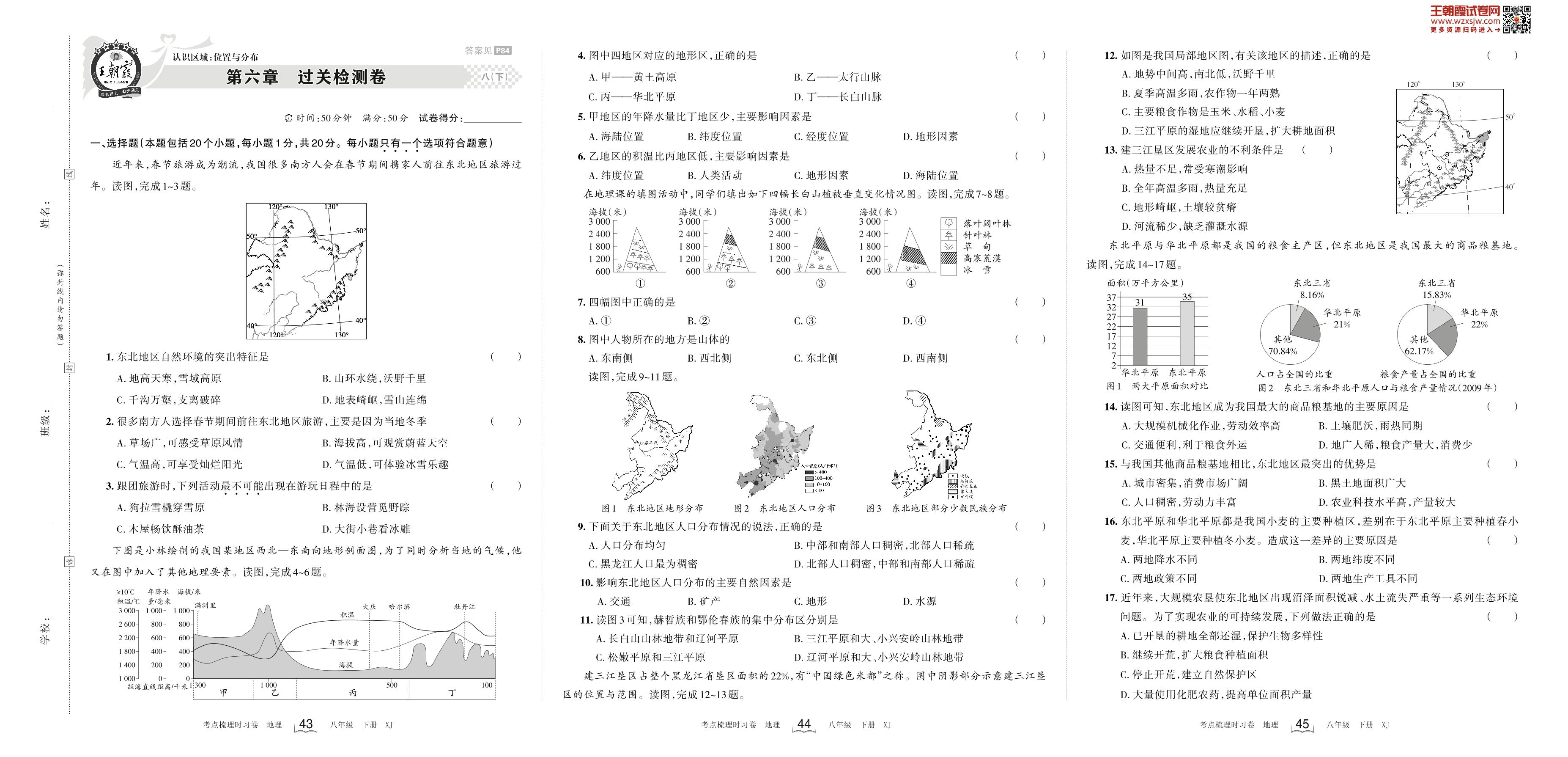 2024下册八年级地理湘教版 第六章 过关检测卷
